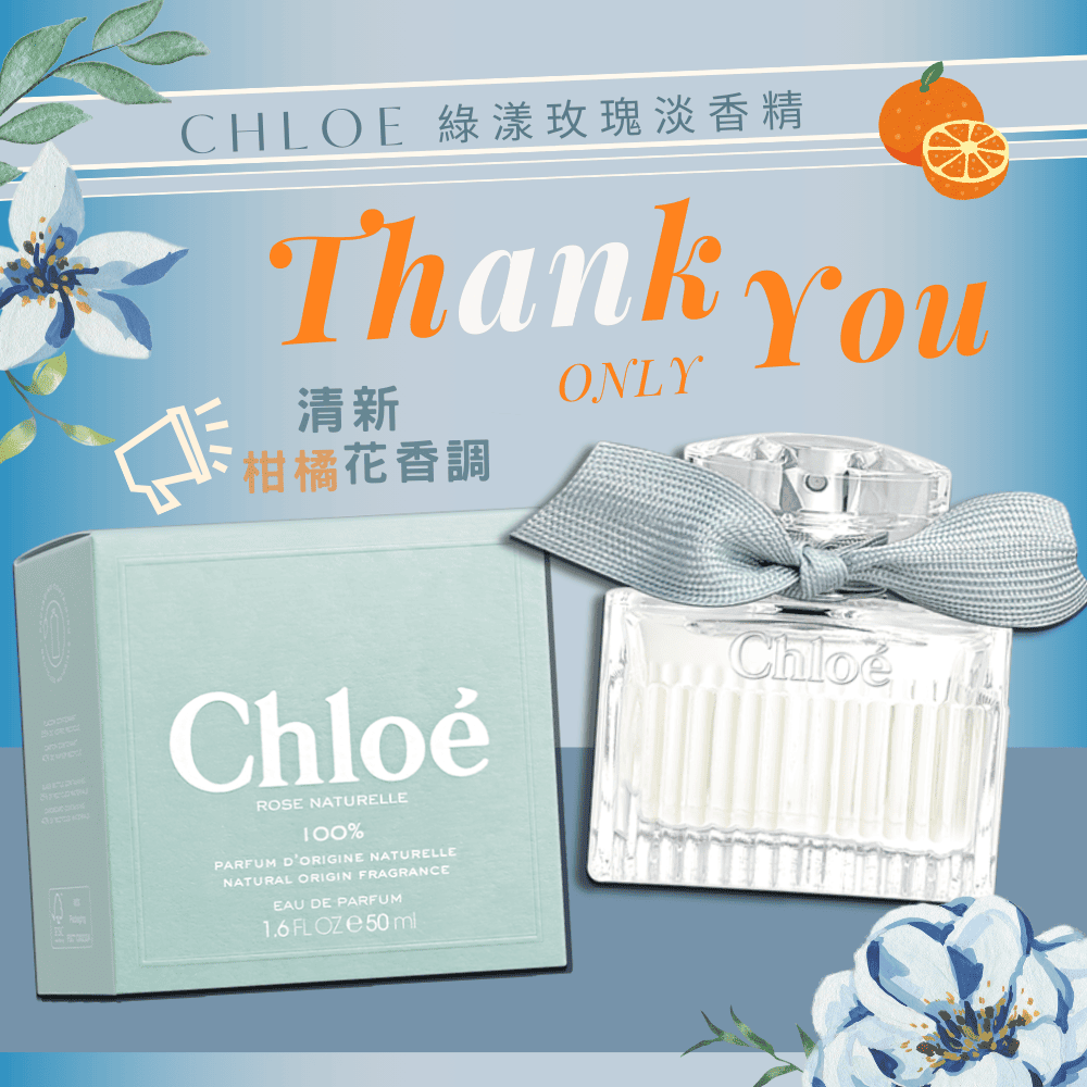 CHLOE Naturelle 綠漾玫瑰女性淡香精 50ML 香 調: 玫瑰花香調 、 柑橘花香調前 調: 橙花、保加利亞有機玫瑰中 調: 黑醋栗芽、含羞草後 調: 雪松、香櫞