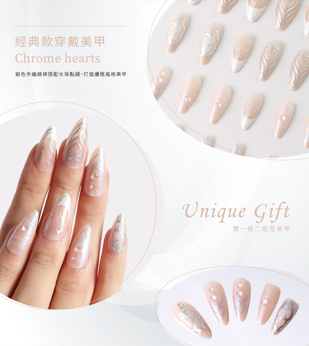內含24片訂製美甲片、果凍膠24張(2片)、膠水1支、酒精棉片1片、美甲挫刀1個、木棒1支