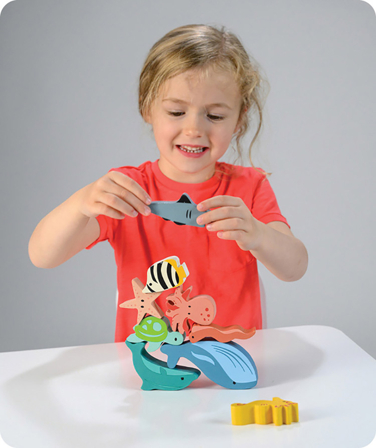 準備好享受木製積木的堆疊樂趣吧!這項有趣的挑戰結合了堆疊和平衡感,培養解決問題的能力和手部精細運動技能。孩子在過程中學會耐心和堅持,瞭解每次的失敗就是邁向成功的第一步,每一次的重建都是為了成就更精采的冒險。海洋疊疊樂內含9個積木:鯨魚、海豚、海龜、海馬、海星、章魚、鯊魚、鰻魚和神仙魚,精美包裝在一只抽繩束口袋,方便收納。玩出學習力:★ 操作過程訓練手眼協調和小肌肉的操控能力。★ 培養孩子的挫折容忍度和耐心,並提升穩定度。★ 排列疊高,有效提高孩子的專注力與空間感的建立。★ 可愛的造型積木,讓孩子邊玩邊認識海洋的生物。★ 親子邊玩邊說故事,刺激孩子的想像力與表達能力。★ 適齡的玩具提升孩子發現及解決問題的能力,建立他們的成就感。商品特色:★ 專為學齡前的孩子研發設計的造型與結構。★ 擁有趣味元素的設計,是玩具,也是教具。★ 實木觸感溫潤且重量適當,最適合小手抓握遊戲。★ 多為圓潤的彎角設計,保護孩子在遊戲中不容易受傷。適用年齡:18個月以上商品尺寸:20x20x7 cm,0.2 kg盒裝尺寸:14x5x14 cm,0.25 kg商品檢驗標識字號(BSMI):D3A918
