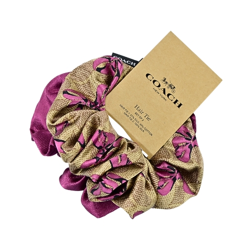 COACH緞面髮圈二入組,採用優雅紫紅蝴蝶結印花,搭配緞面大腸圈造型,聚焦單品輕鬆展現迷人氣質。★尺寸:中間空心直徑3CM,外圈總長26CM。