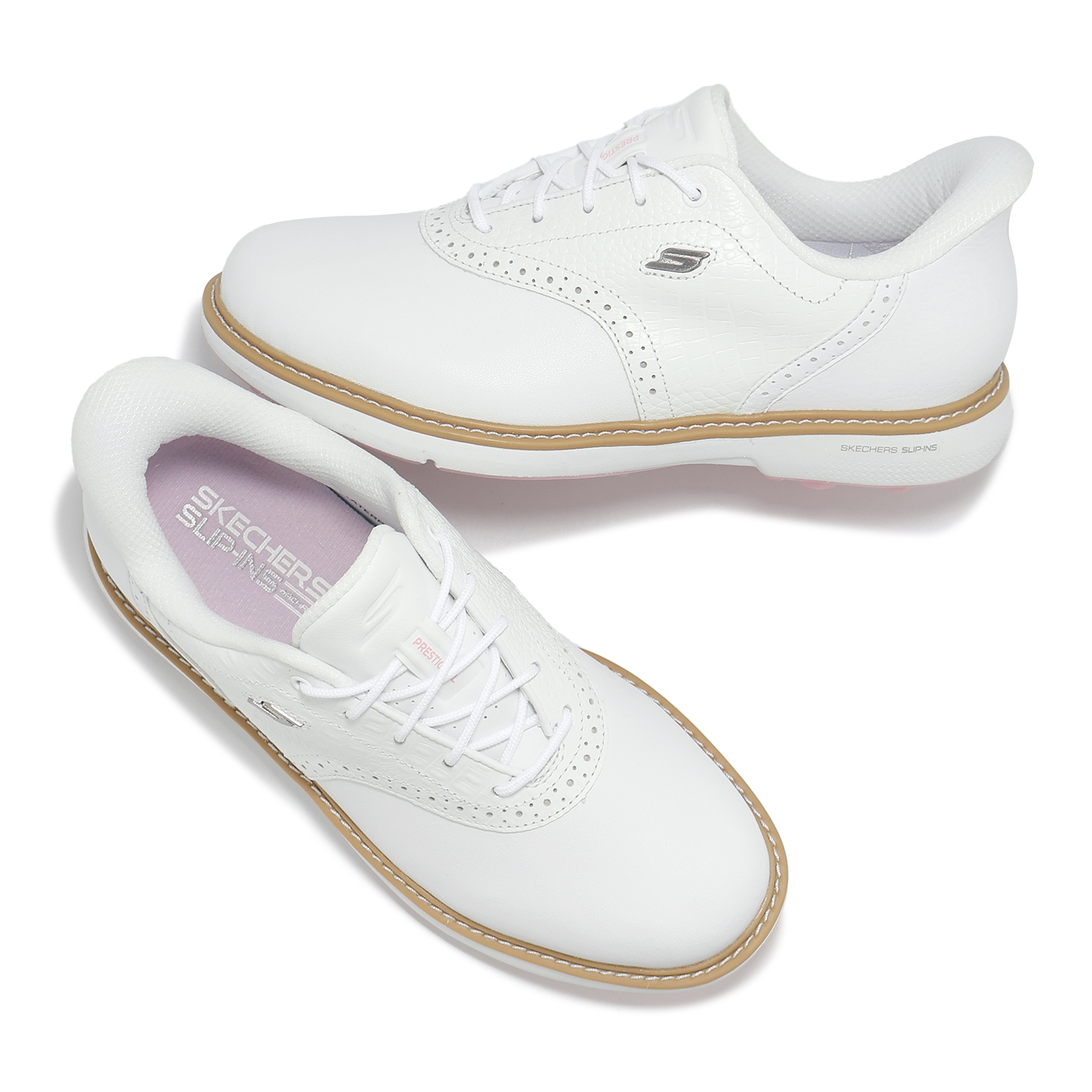 品牌: SKECHERS型號: 123126-WPK品名: Go Golf Prestige SL Slip-Ins版型: 腳寬者建議大半號* 鞋面採合成皮革搭載防水科技,提供雙足在球場上舒適乾爽體驗。