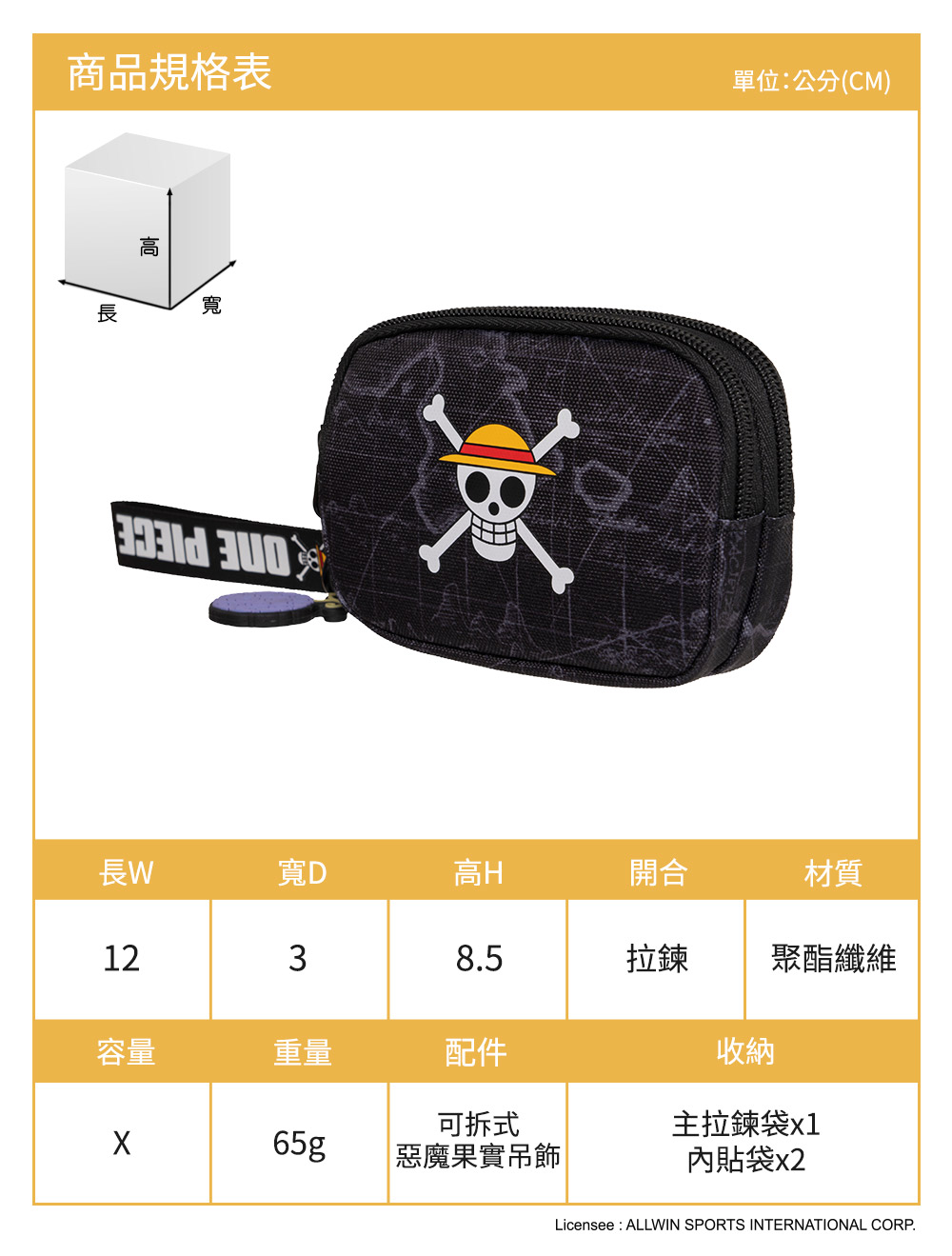 長寬高12x3x8.5cm重量 65g