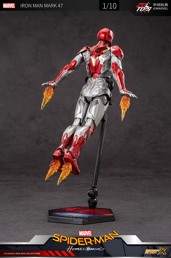 鋼鐵人「Mark 47」在《蜘蛛人:返校日》登場的鋼鐵裝甲,是《英雄內戰》的西伯利亞基地大戰後重新升級的裝甲,基本上造型與馬克46近似,但是裝甲的配色部分少了金色、添加了銀色,這樣的配色設定出自於「漫威終極宇宙」。