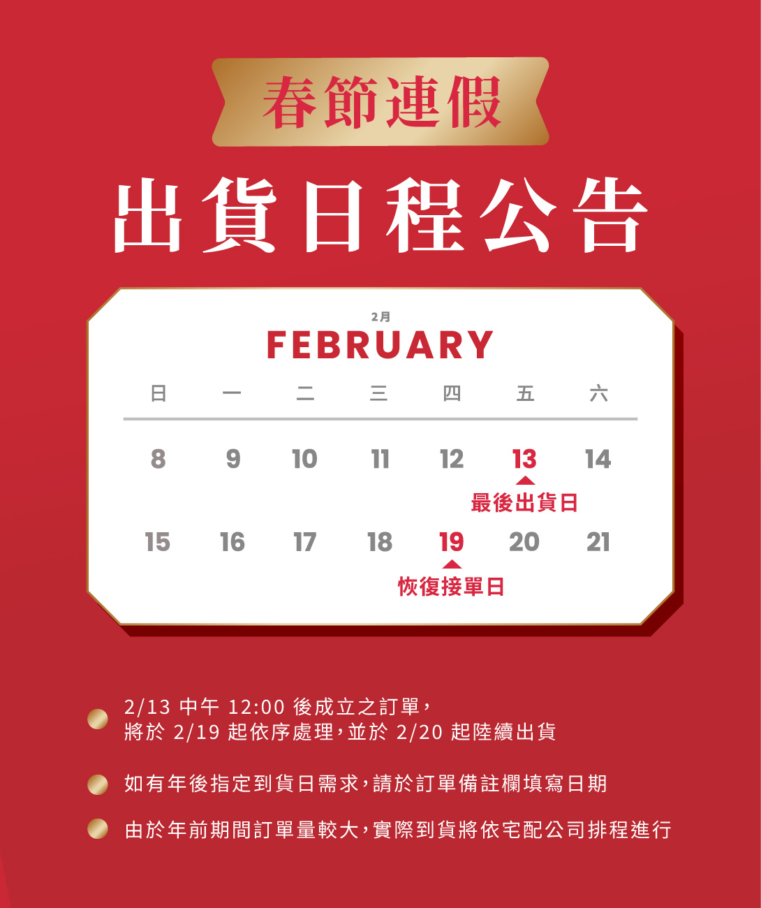 (若遇颱風等不可抗力之因素,將依高雄市政府放假基準,不計入配送天數內計算。)