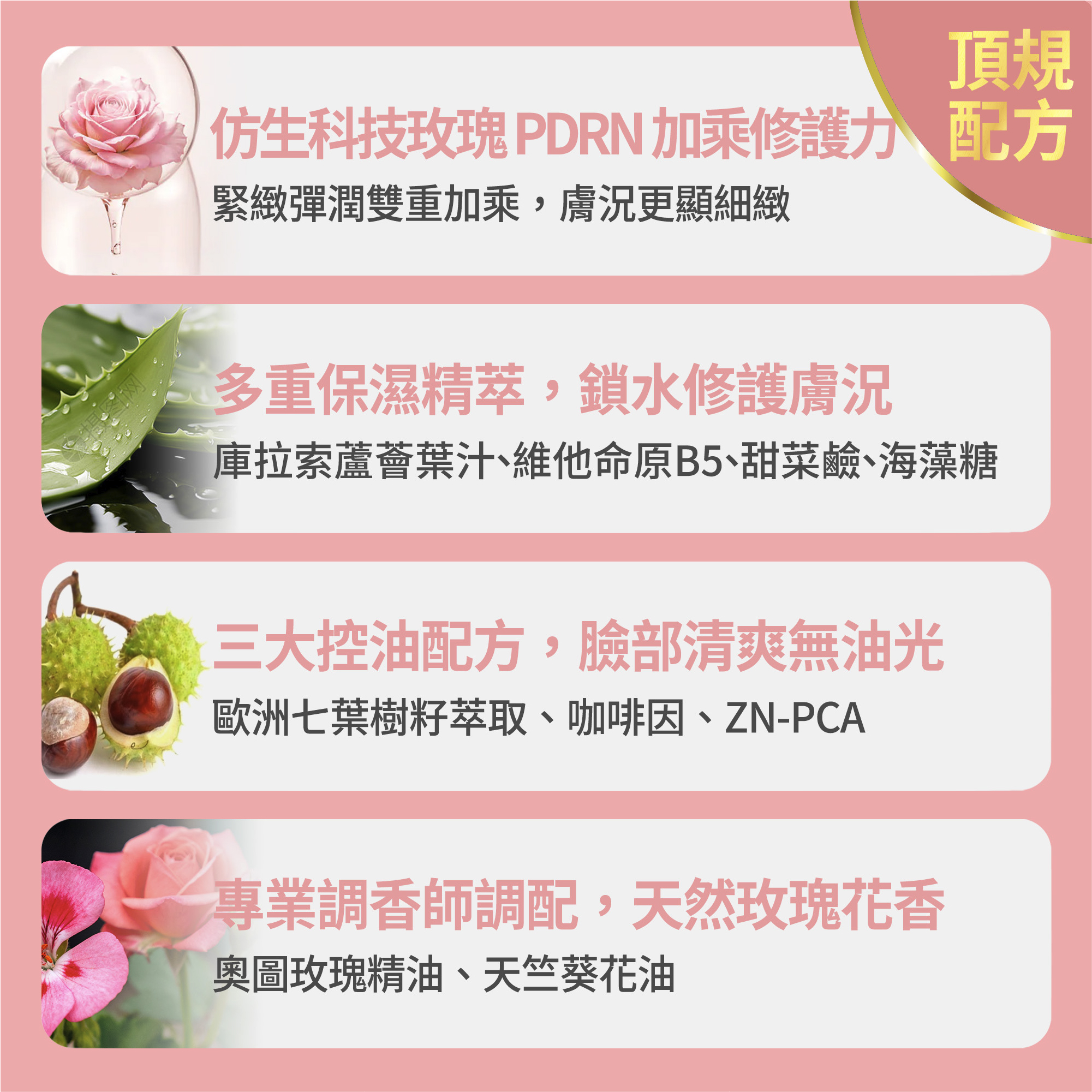 可以先使用豐傑生醫的金盞花淨膚洗卸蜜徹底清潔後,再噴玫瑰潤澤青春露收斂保濕、再加上玫瑰賦活精華液 or 玫瑰鎖水凍齡霜 or 瞬效活膚膠囊,加強滋潤肌膚。
