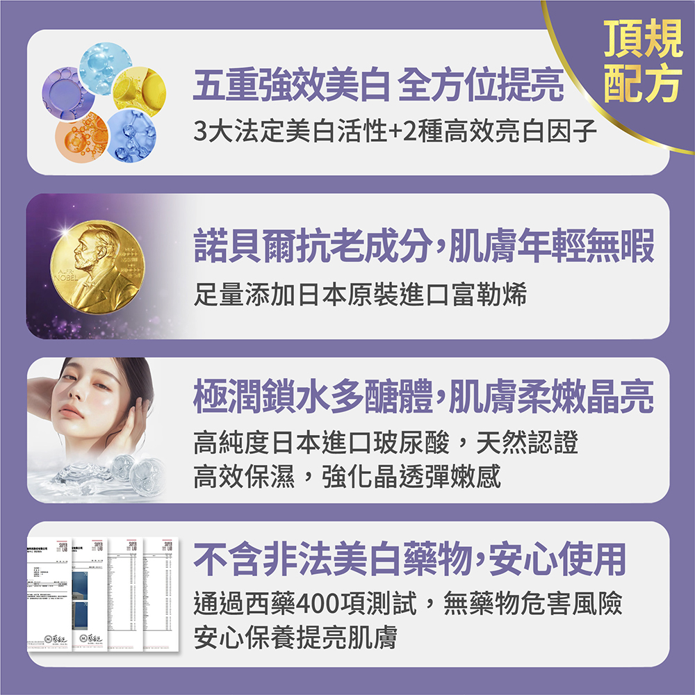 ➤5重強效美白配方,法定成分+亮白因子,直上最頂功效