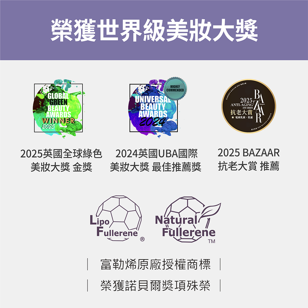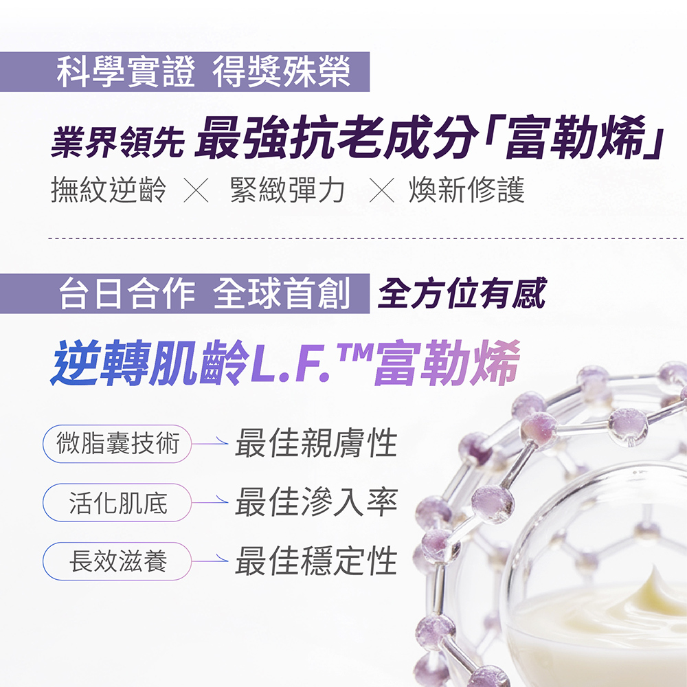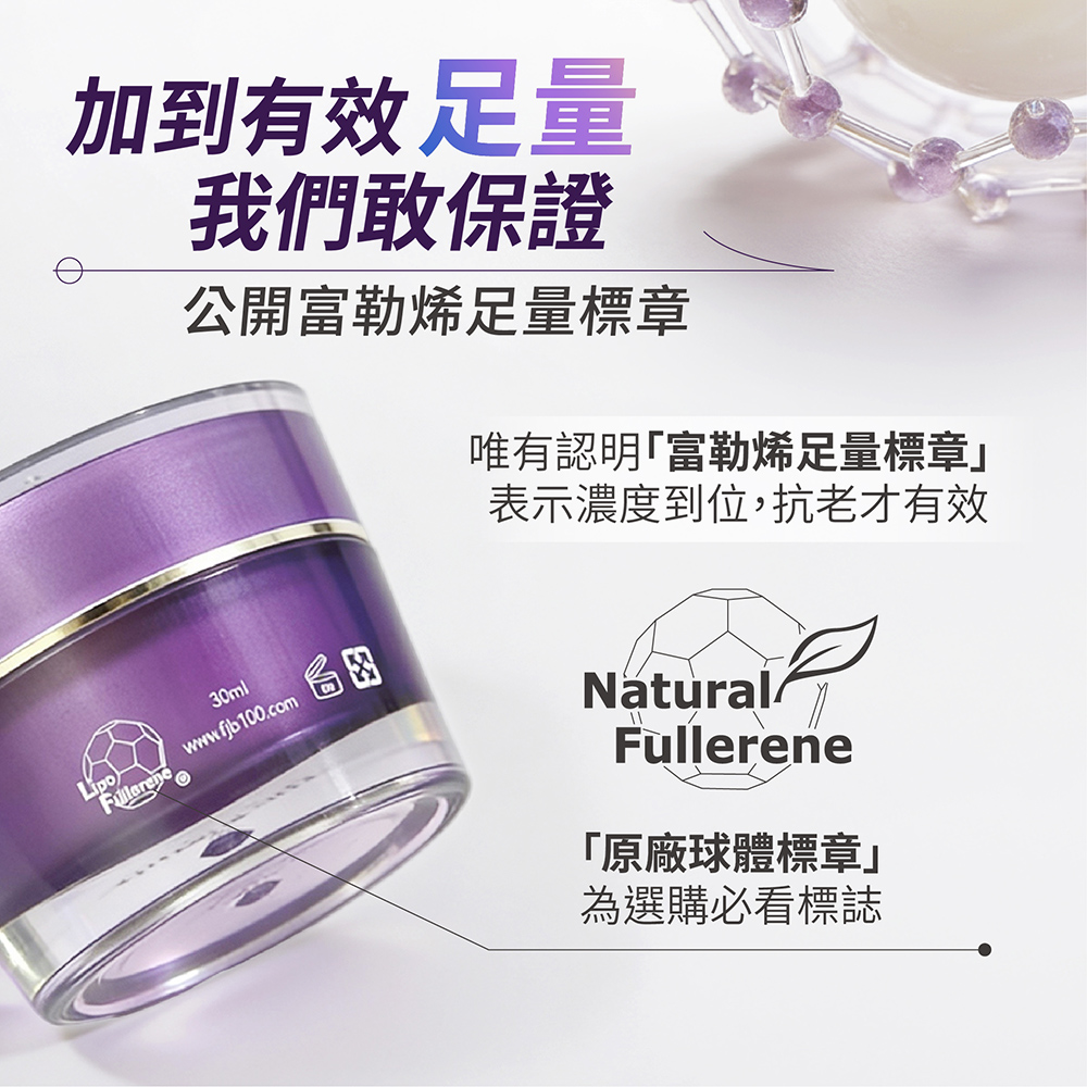 ➤足量添加諾貝爾級抗老成份「L.F.™富勒烯」