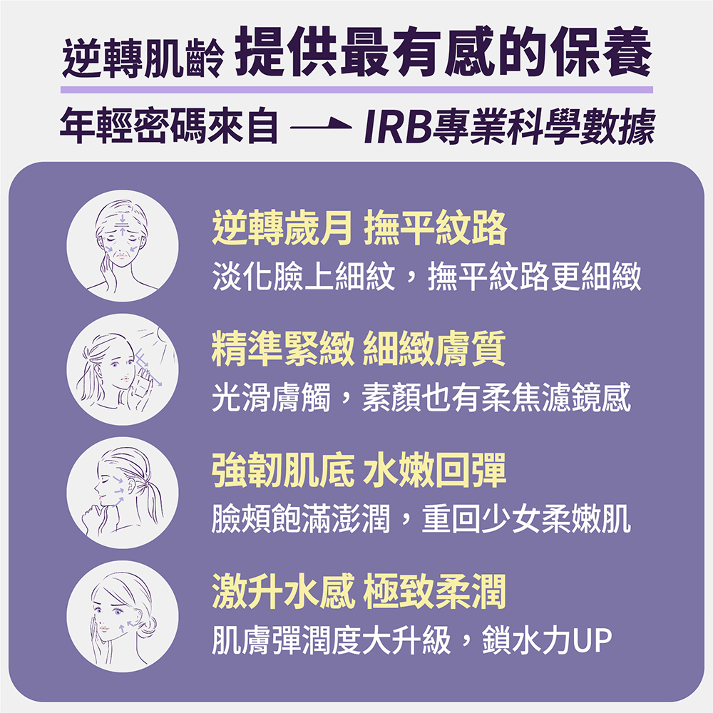 ➤IRB人體肌膚試驗,4周明顯改善老化膚況