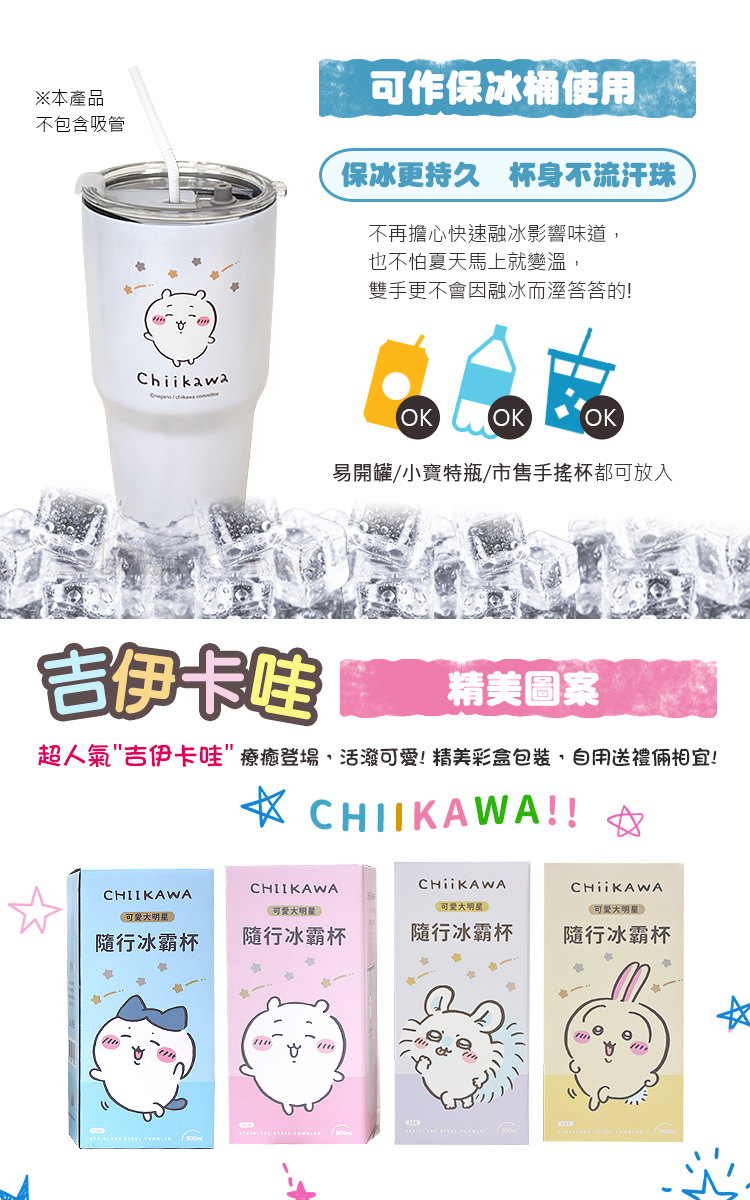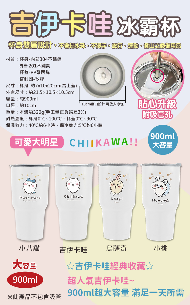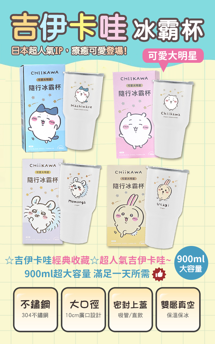 吉伊卡哇~冰霸杯900ml超大容量,滿足一天所需,超人氣吉伊卡哇圖案冰霸杯,療癒可愛登場,精美彩盒包裝,自用送禮倆相宜!