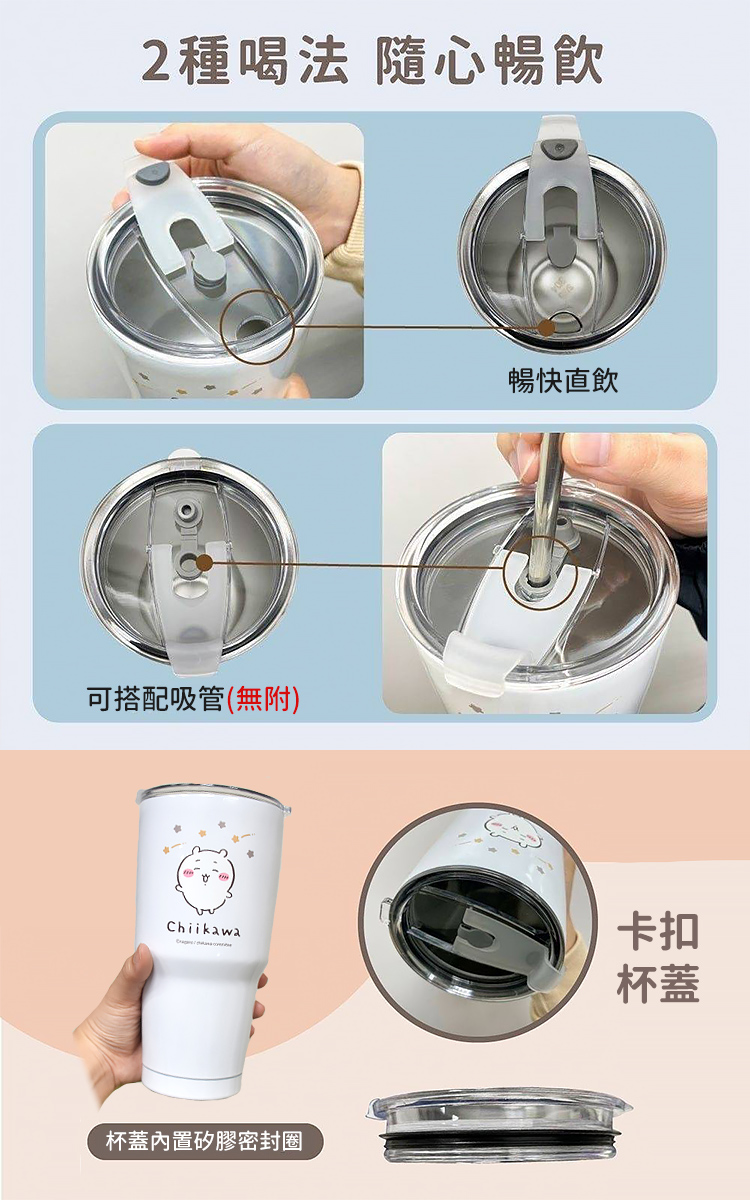 ●吉伊卡哇Chiikawa正版限量授權(稀有珍藏)●原廠盒裝送禮自用皆宜●保溫 保冰 冰霸杯●杯身雙層設計,保冷保溫效果佳●廣口設計可放入冰塊●長效保冰保溫不鏽鋼杯●兩用密封杯蓋,吸管/直飲●大容量,杯身好握好拿●旅行、運動、登山之必備用品