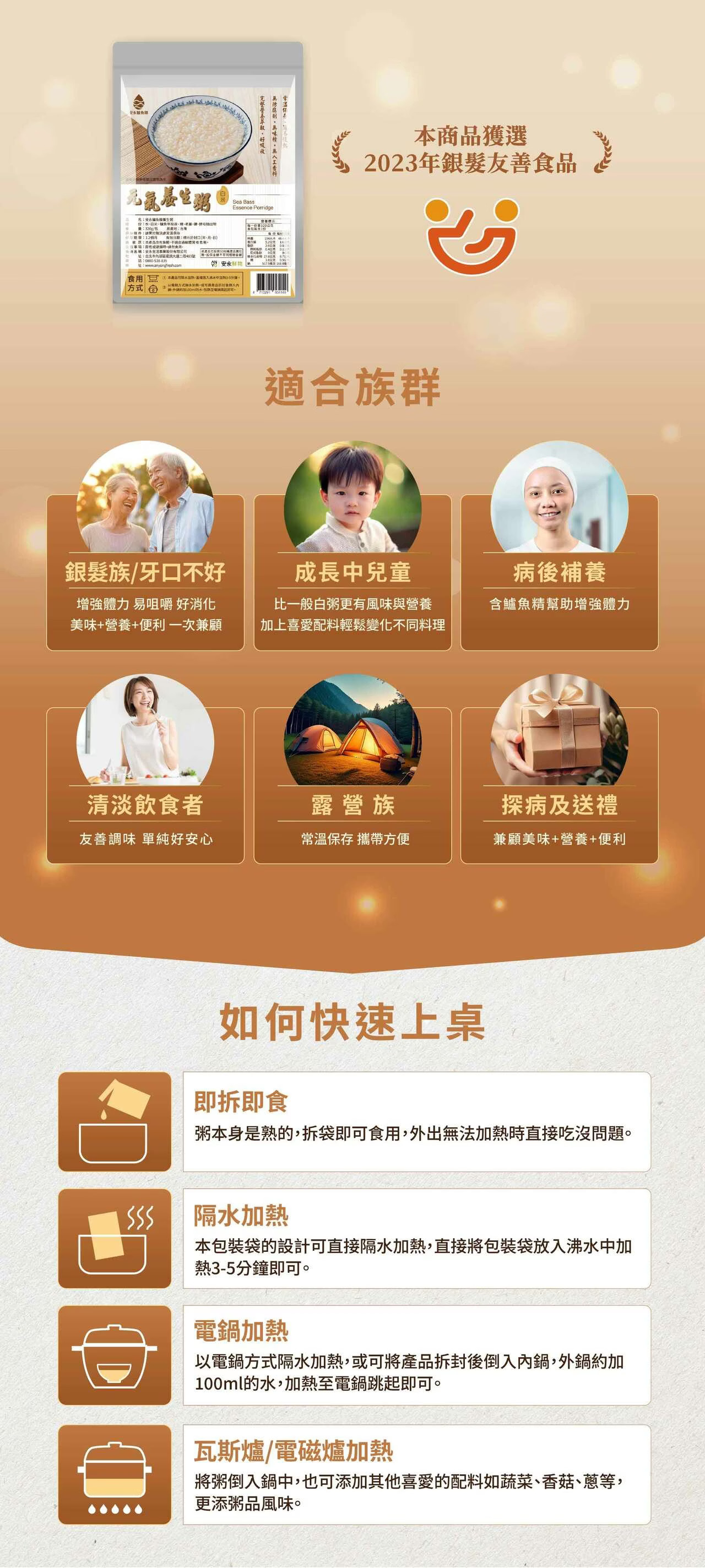 成份:水、白米、鱸魚萃取液、糖、老薑、鹽、酵母抽出物規格:320g/包 x 10包組產地:台灣保存期限:12個月保存方式:請置於陰涼處常溫保存,避免高溫或陽光直射