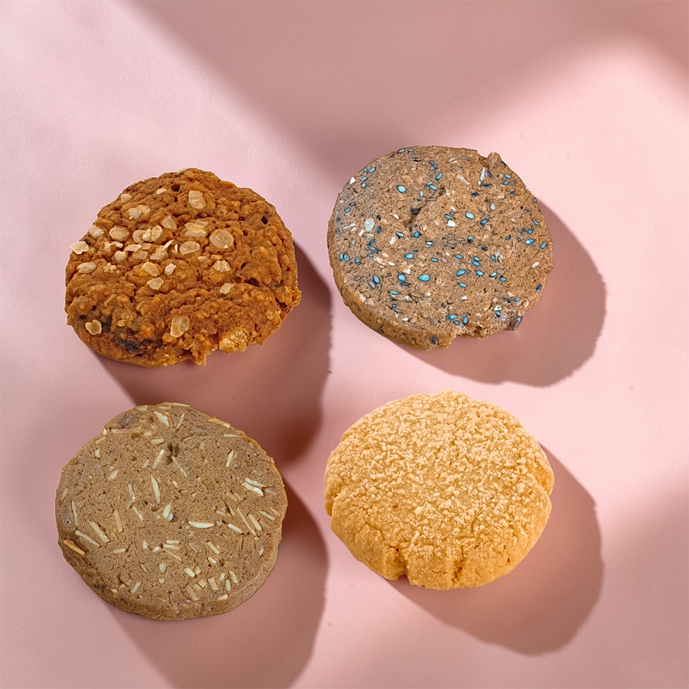 .手工餅乾5入(原味X1、芝麻雜糧X1、肉桂杏仁X1、燕麥X2)