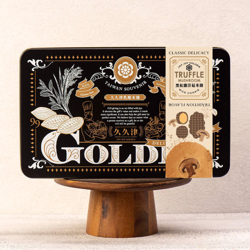 ※本商品不接受離島配送若填寫離島地址將無法配送並取消訂單※白色粉末為黑松露粉請安心食用【黑松露 x 無麩質 x 洋菇】提供"全素者"的高端贈禮首選使用100%蓬萊米粉搭配黑松露鹽可愛洋菇切片烘乾結合松露米餅將這份獨特濃郁揮灑米餅之上盡情享受奢華迷人的頂級香氣奢華巨獻 品味經典 回味雋永延續專利米餅的無麩理念創新研發快來久久津收服你的蘑菇寶貝吧!蘑菇~蘑菇~躲在~久久津的角落!外盒設計以四季豐藏為主題將台灣在地食材四季盛產的農作物『稻米、茶葉、可可豆、蘋果』以手繪的方式呈現出簡約日系風繪畫出台灣早期北歐建築風格特色將米餅做出法蘭酥般酥脆口感,是目前業界唯一