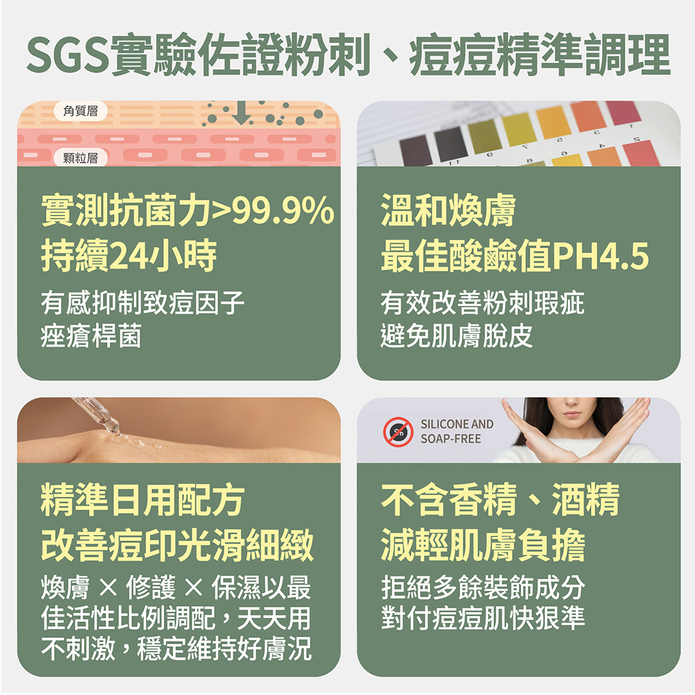 ➤高效淨痘配方,改善粉刺瑕疵