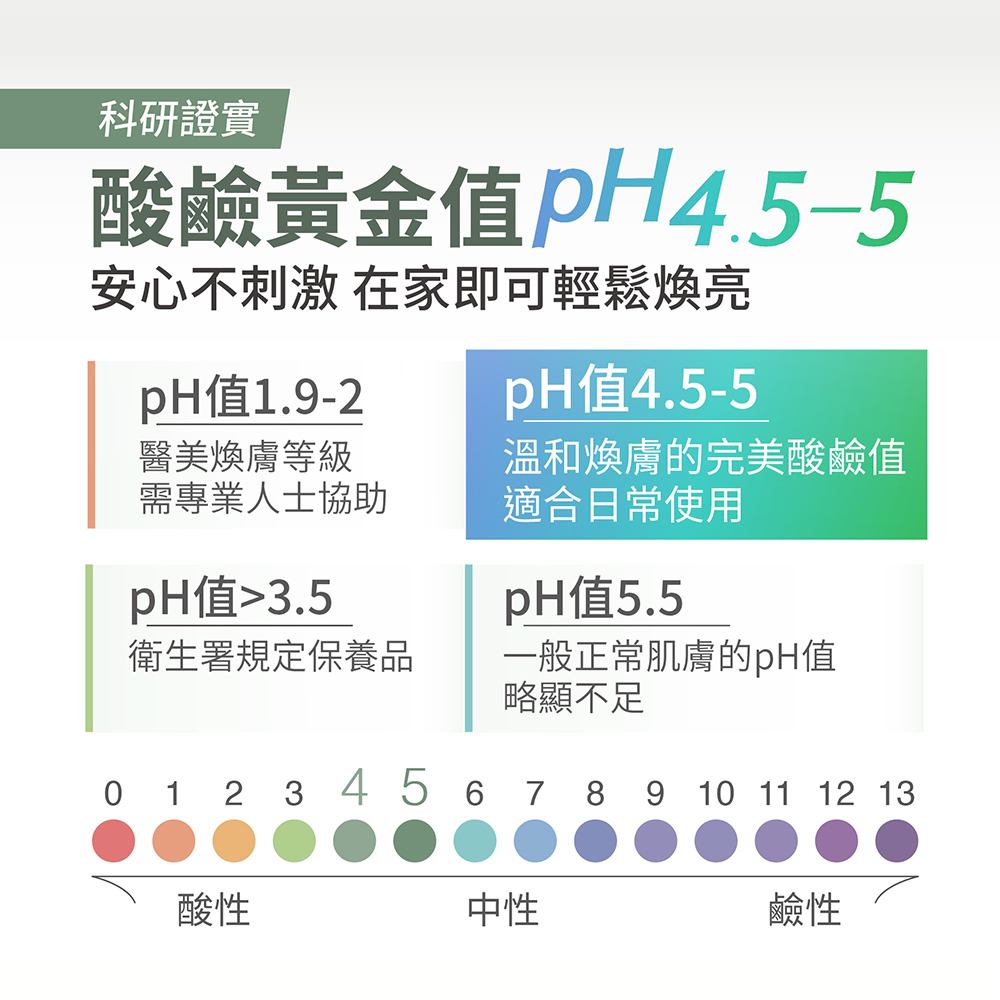 ➤最佳pH4.5,溫和煥膚不脫皮