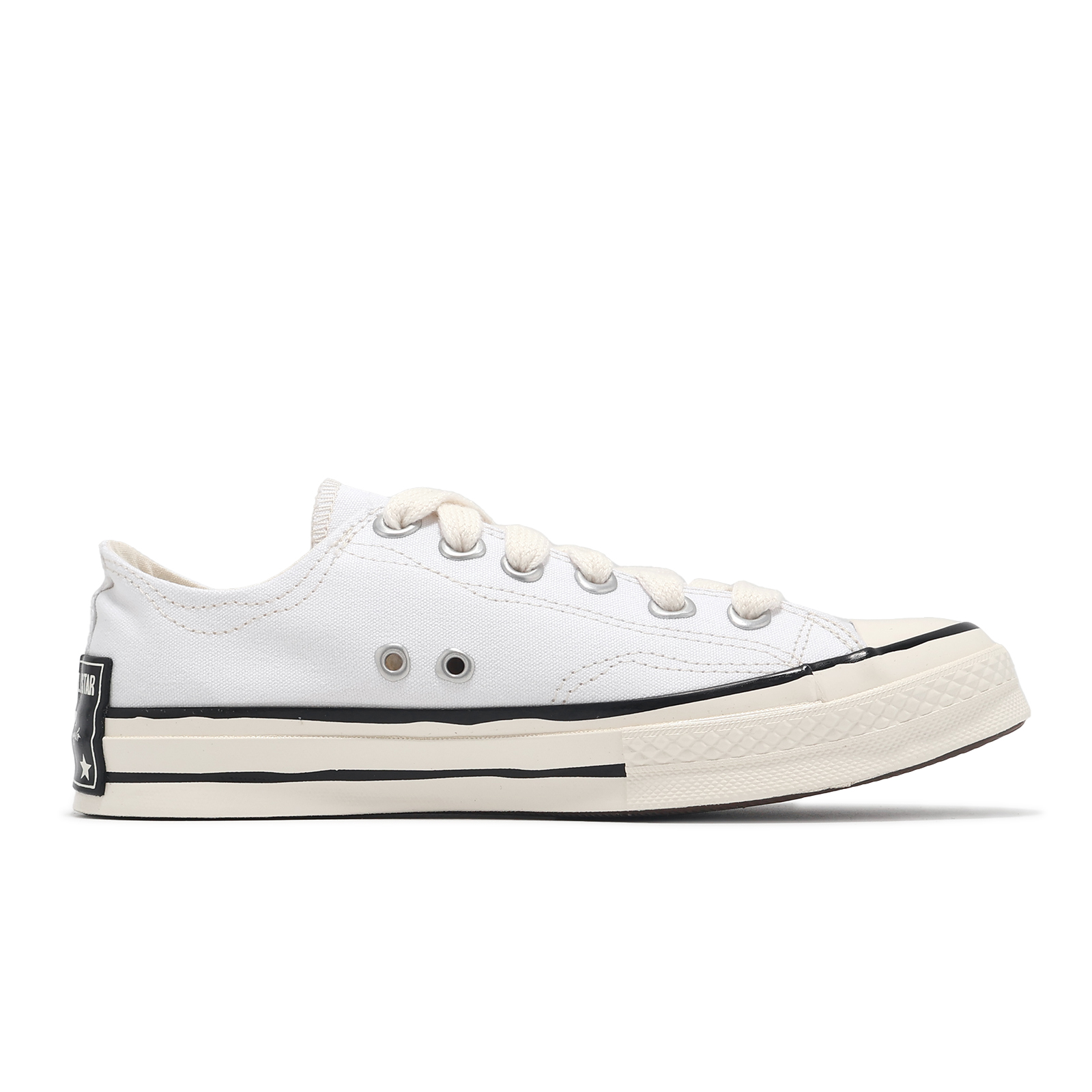 品牌: CONVERSE型號: A08525C品名: Chuck 70 Low版型: 版型正常* 1970使用較為復古的奶油底,且在楦頭前方多添加縫線,使雙足擁有更好的包覆效果。