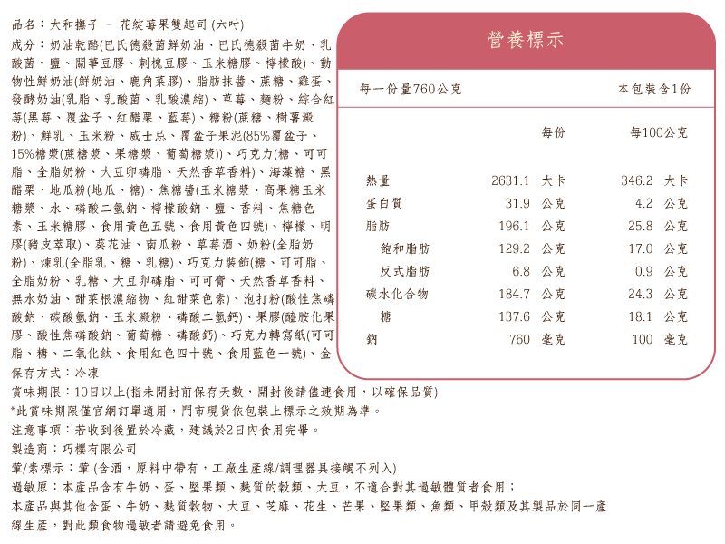 商品內容名稱:大和撫子-花綻莓果雙起司蛋糕(6吋)貨號:0101000301材質:食品尺寸:直徑約 15 cm,高度約 6.5 cm