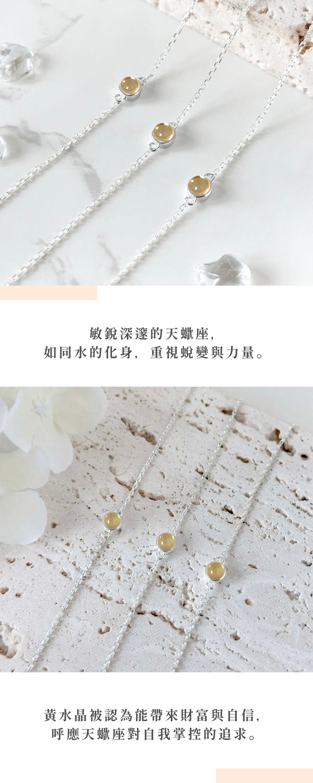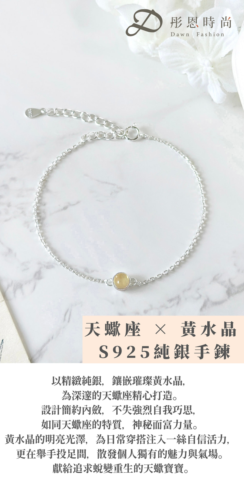 獻給追求蛻變重生的你,這款天蠍座黃水晶純銀手鍊,不只是耀眼的日常飾品,更是內在力量的象徵。