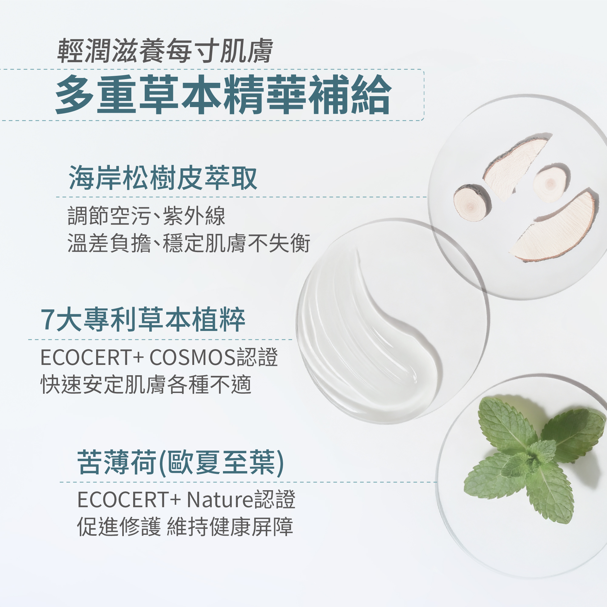 ➤有機洋甘菊萃取,修護肌膚