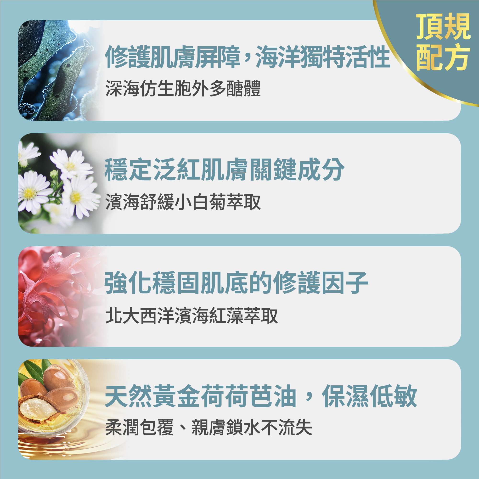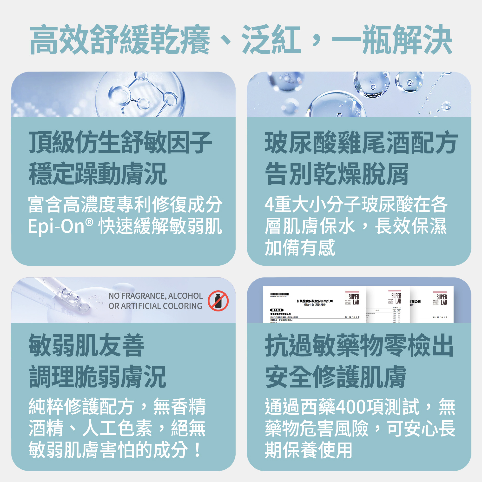 ➤專利舒敏因子,改善乾癢泛紅