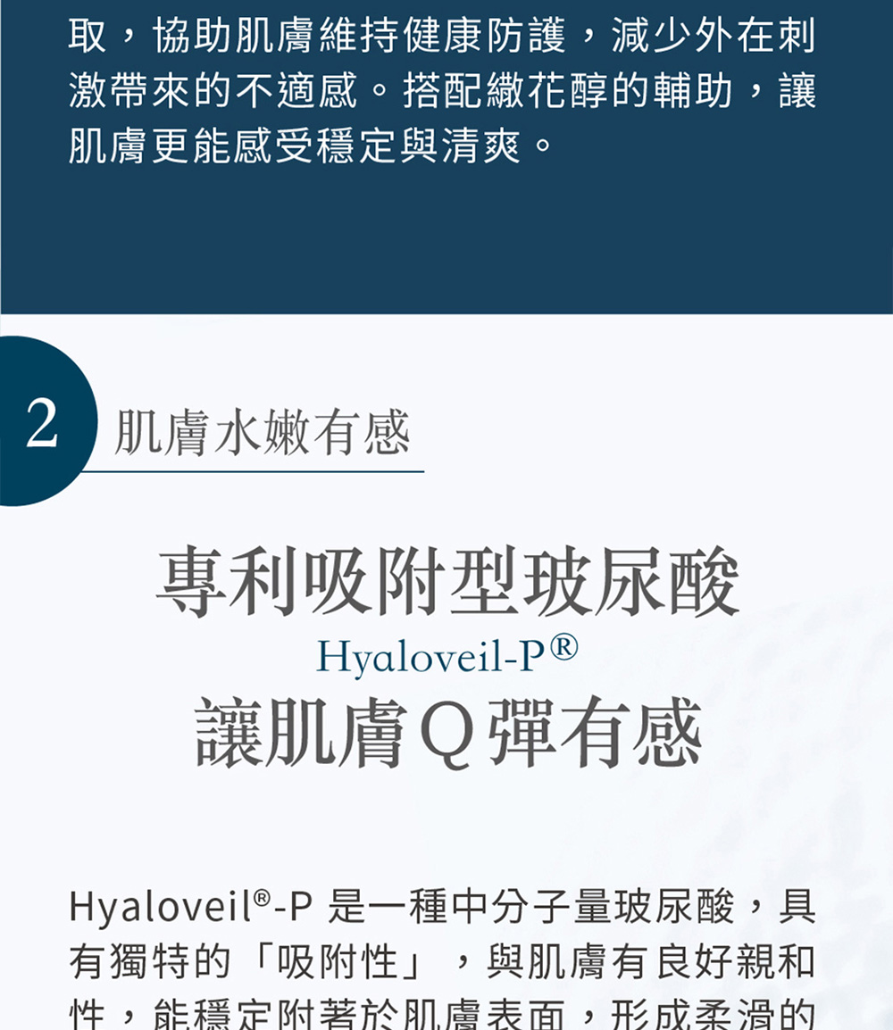 ✔ 吸附型專利玻尿酸、滋潤肌膚不緊繃