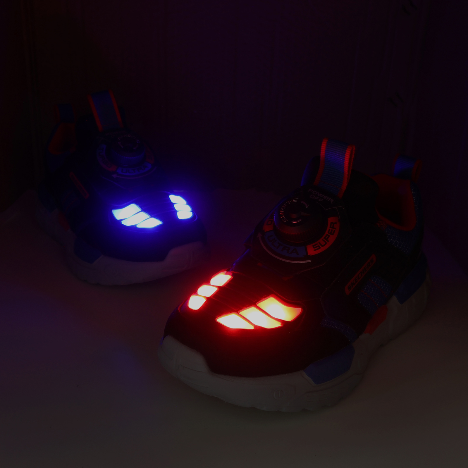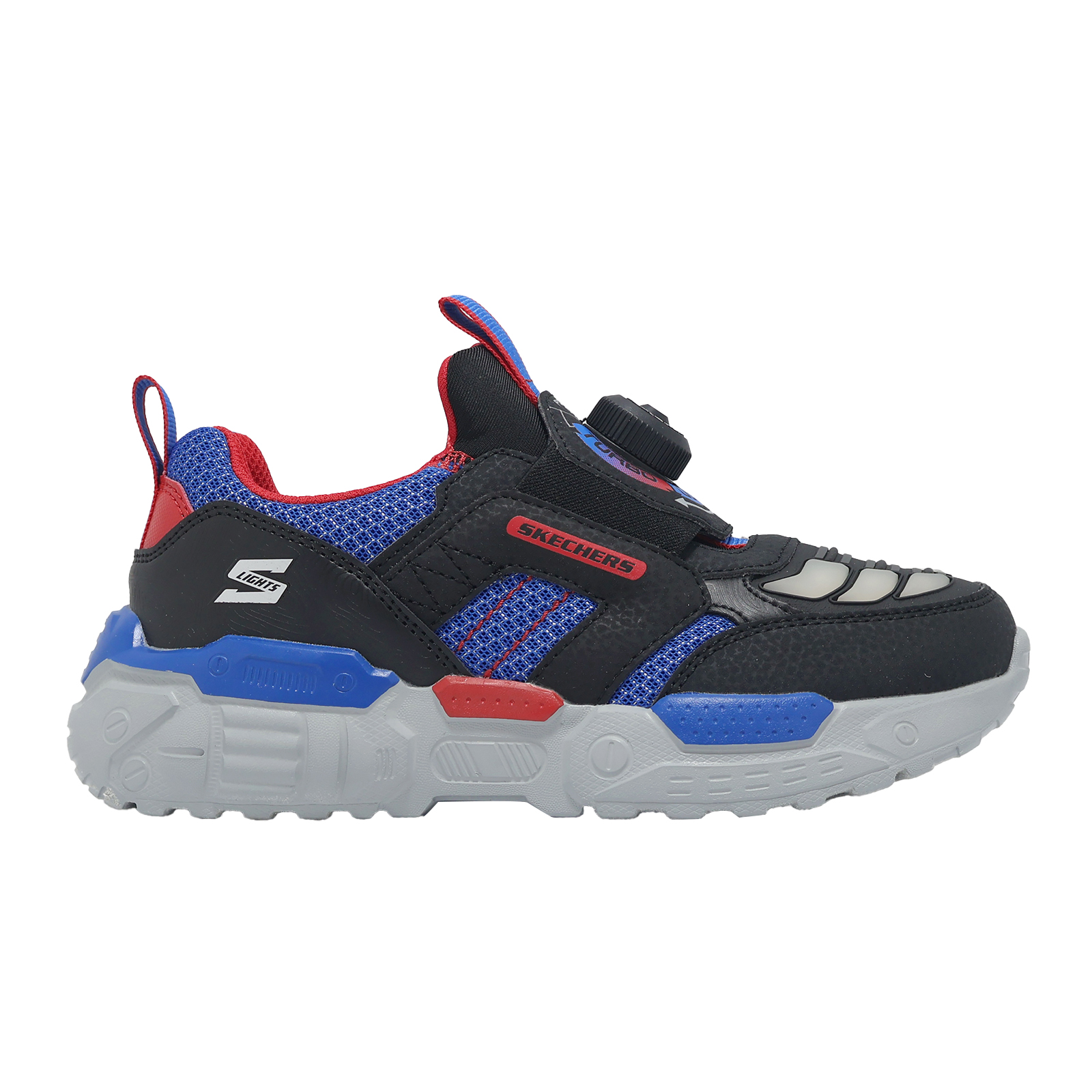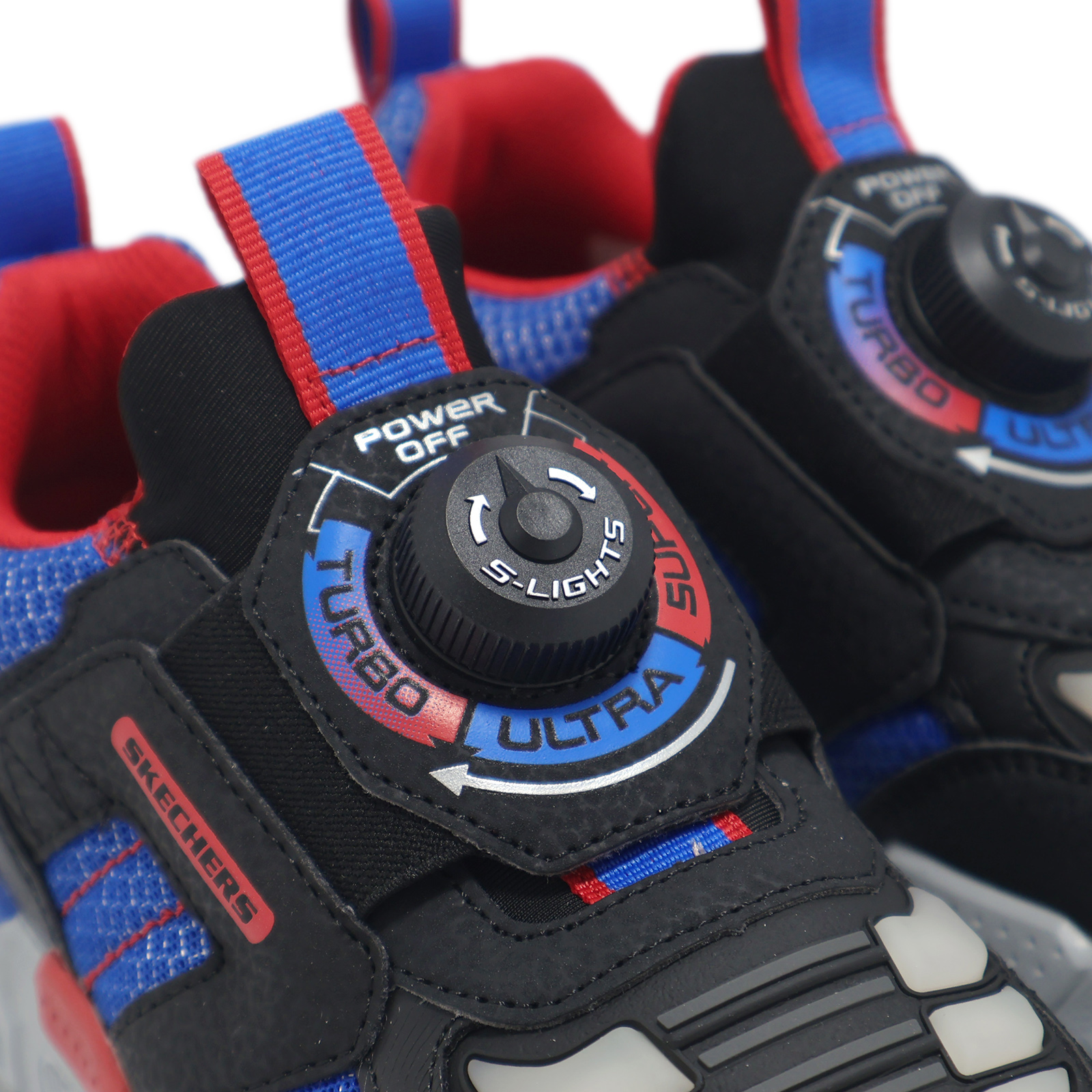 品牌: SKECHERS型號: 400170-LBKRB品名: S Lights- Turbo-Fuse-Selectrons版型: 版型正常TURBO-FUSE 系列,渦輪閃燈鞋 - 未來戰士,全新TWIST DIAL旋鈕三色閃燈設計,酷炫閃燈功能,旋鈕一轉,紅藍漸變光影隨行,趣味無比。