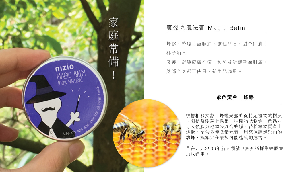 取自蜜蜂為保護蜂巢所分泌的蜂膠,含有多重來自花粉產生的微量元素與維生素,可適度緩解與修護肌膚不適問題。