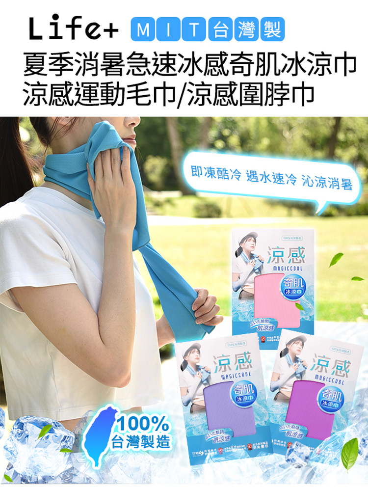 * 國家Q-MAX涼感認證-Q-MAX涼感值高達0.214,通過台灣紡織研究所(TTRI)認證,符合高標準涼感測試,實測有效降溫!* 加水即涼,越甩越冰!只需加水、擰乾、輕輕甩動,瞬間冰涼降溫的涼爽體驗!* 透氣不黏膩,長效清爽-特殊涼感材質,吸水快乾不悶熱,輕盈好攜帶,隨時隨地都能享受冰涼舒適。* 安全無毒-通過多項無毒檢驗,本商品不含偶氮染劑及游離甲醛等有無物質,請安心使用* 炎夏必備用品,外出戶外運動慢跑健身、騎車登山、露營旅行、 上班通勤、居家降溫* 全程台灣製造,品質保證-無甲醛、無游離性螢光劑、無偶氮染料、無有毒化學物質。