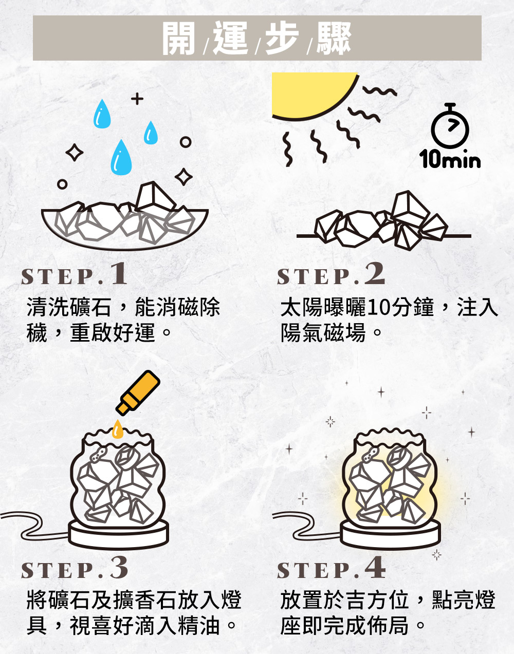 2.可視個人喜好將精油滴於擴香石上,透過香氛可達到淨化開運效果。