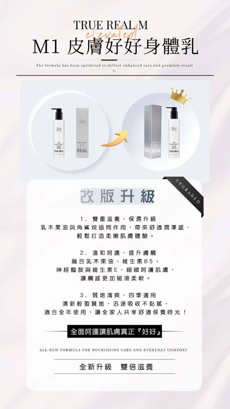 獨具匠心的調香給您肌膚的極致呵護,M1皮膚好好身體乳完美呈現保濕水潤的絕佳效果
