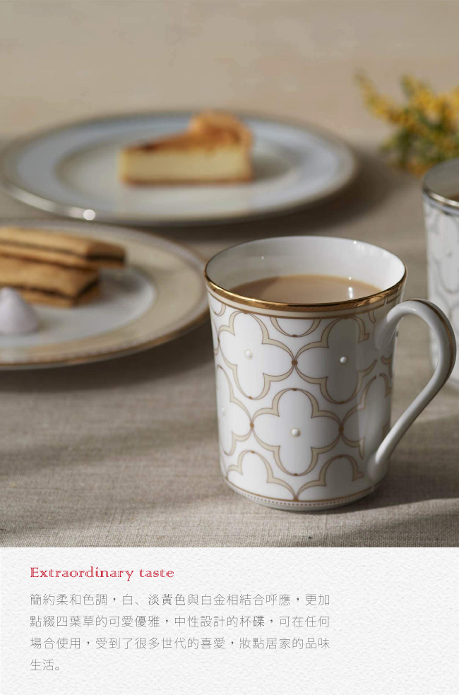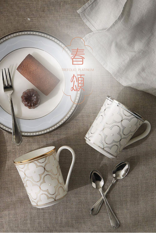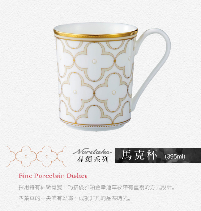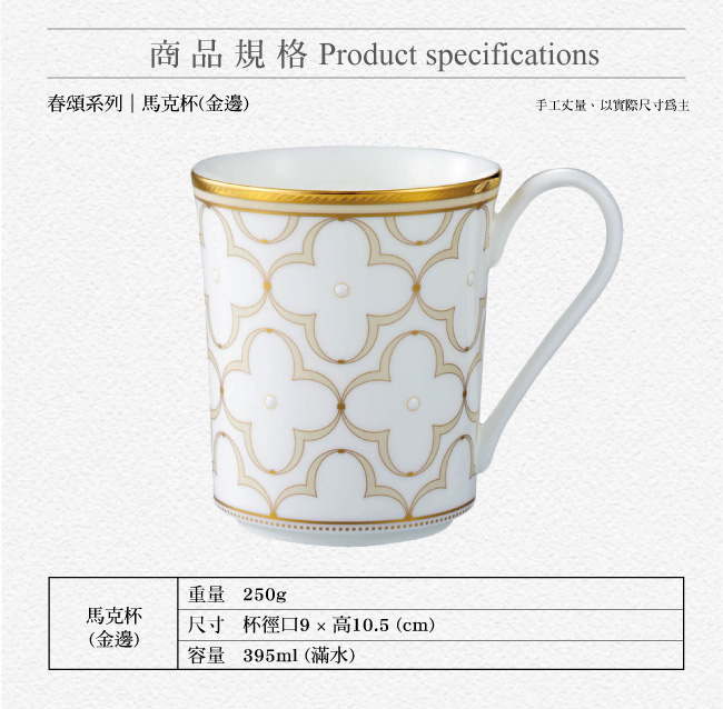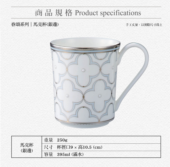 名稱:春頌骨瓷馬克杯單入兩色任選(附禮盒)(淡黃金邊/淡藍銀邊)