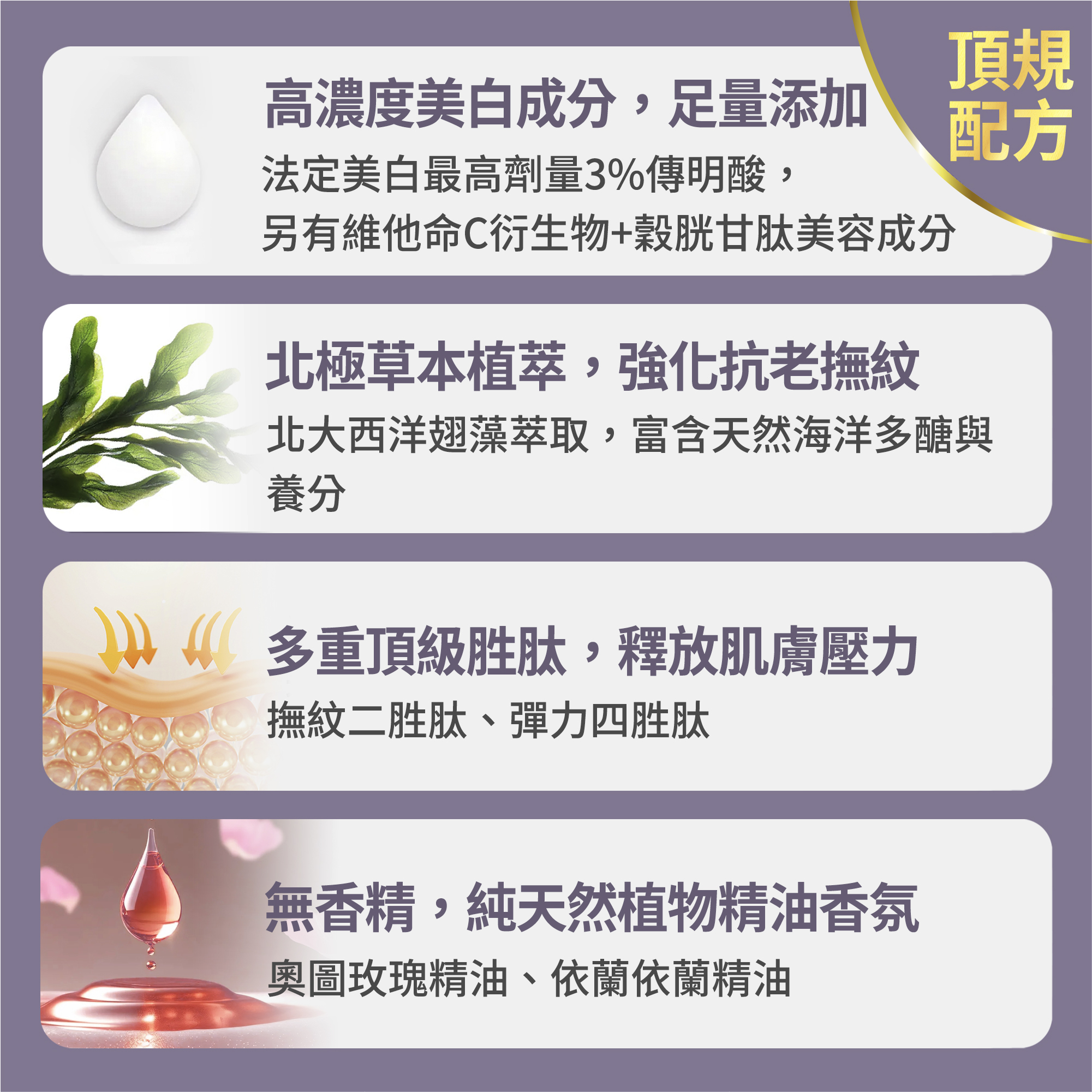 ➤ 美白潤澤、改善暗沉、皙白肌膚