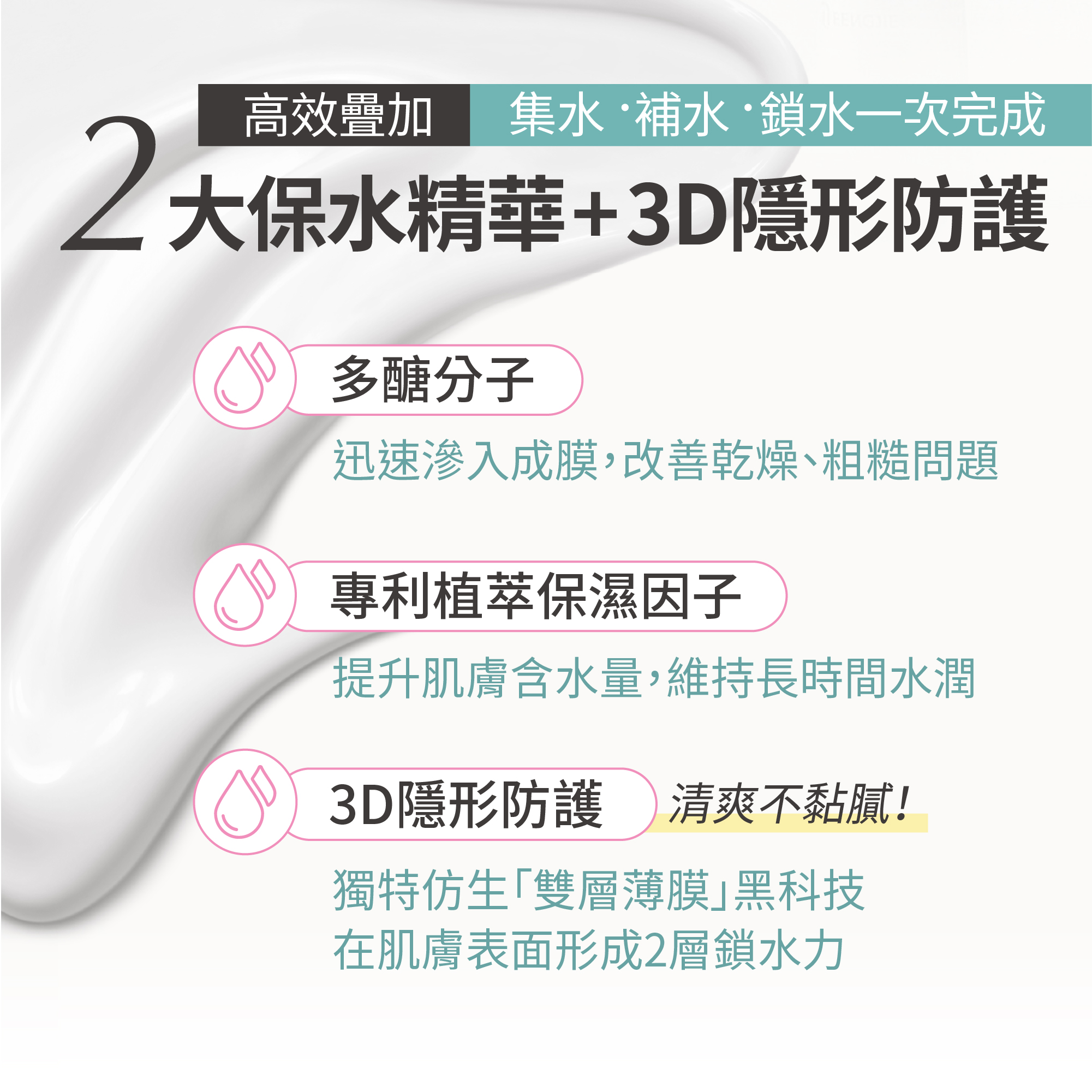 ➤仿生薄膜科技打造隱形保護層,全天鎖水透氣零負擔
