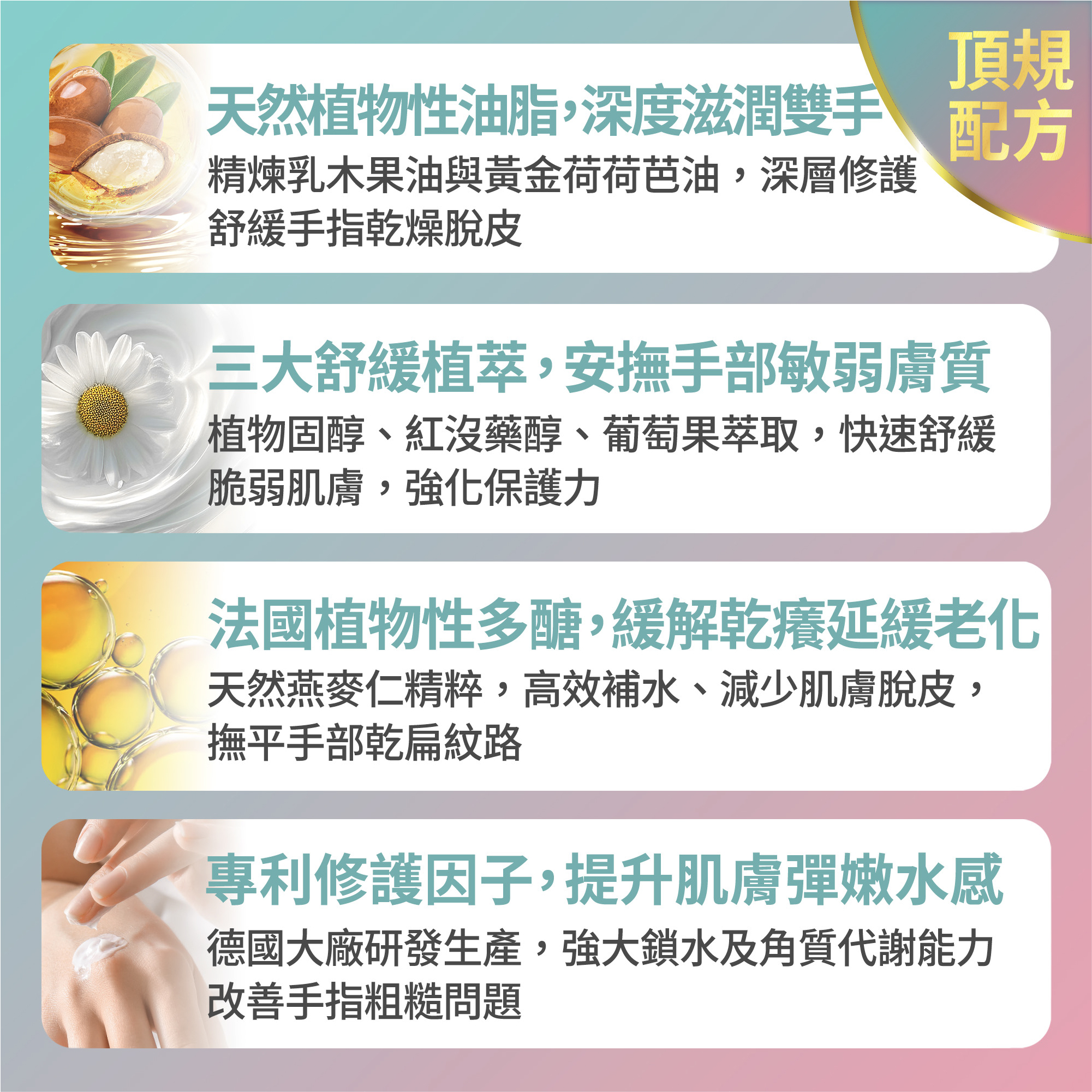 ➤實現極致修護潤澤感,滋養雙手不黏膩,適合所有膚質