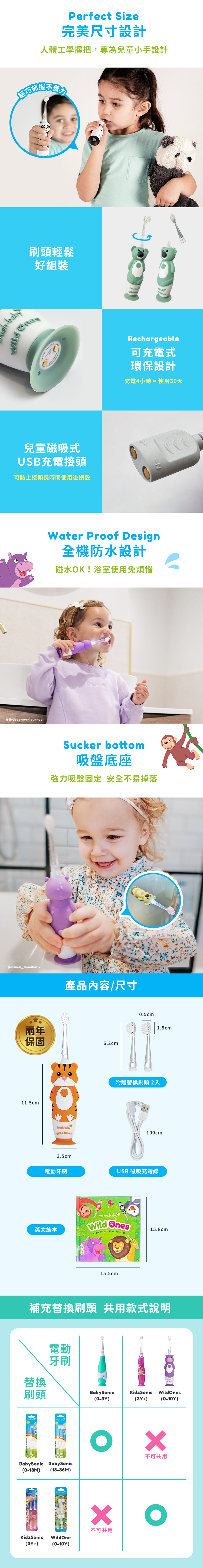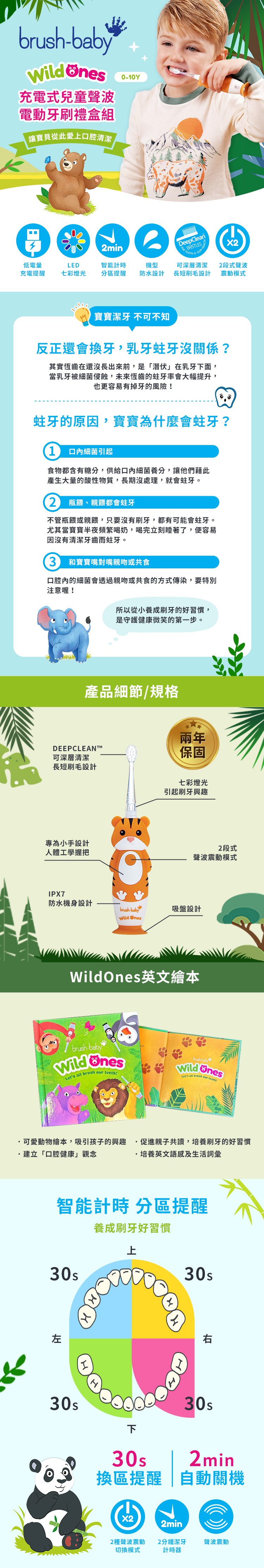 |Brush Baby WildOnes 充電式兒童聲波電動牙刷禮盒組|