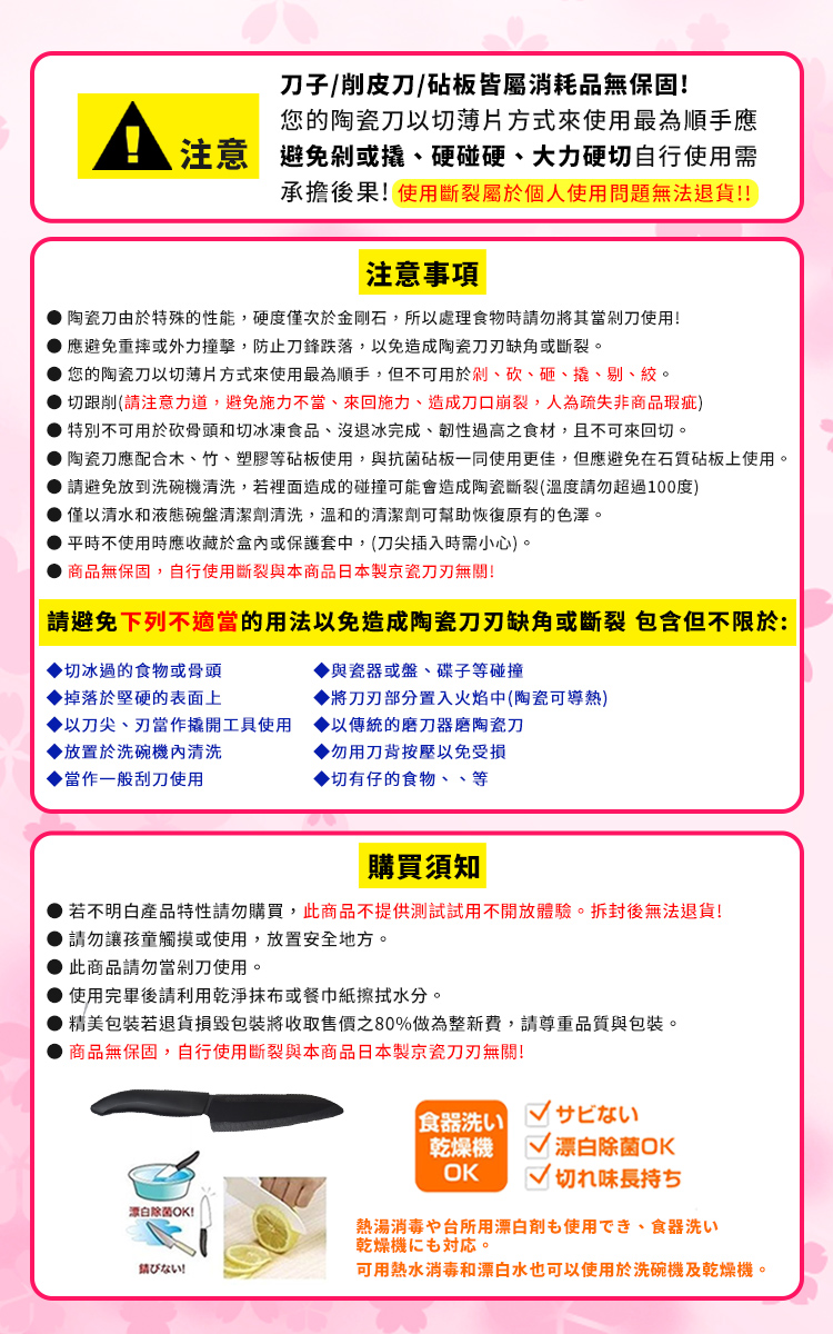 (自己不會使用、使用不當、不會操作、效果不如預期、刀子太大、太小、認知錯誤、、等,個人自以為的問題 與 本商品無關!)