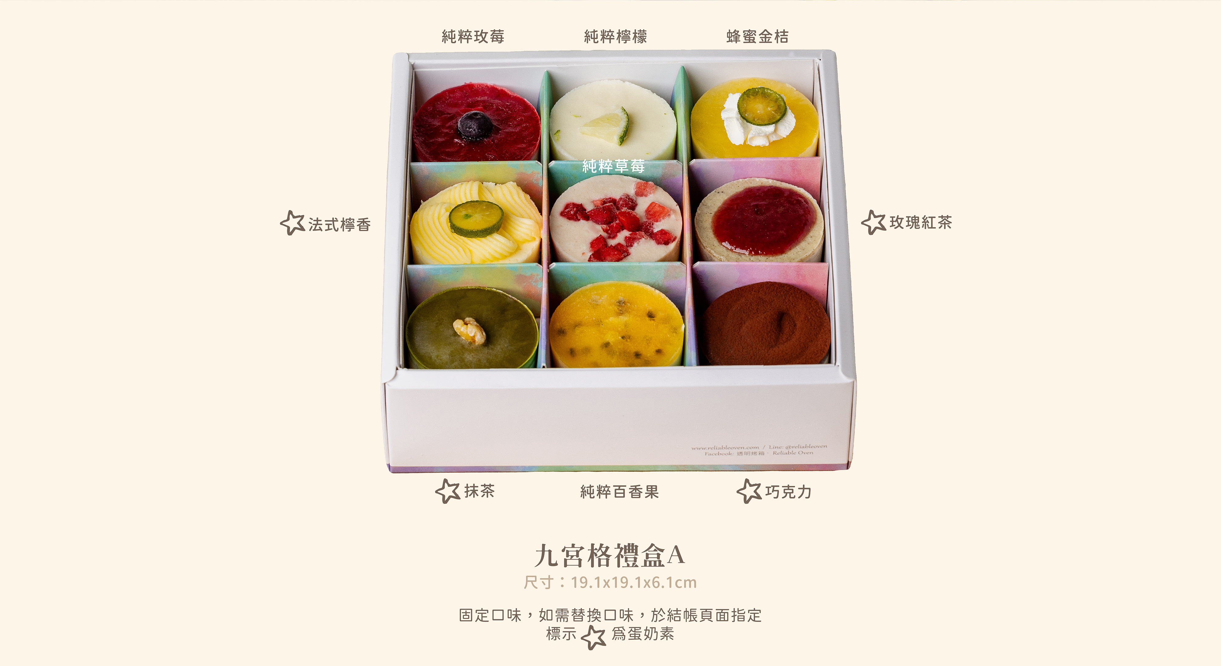 將熱烈繽紛的口味,仔細的封入9宮格禮盒中。