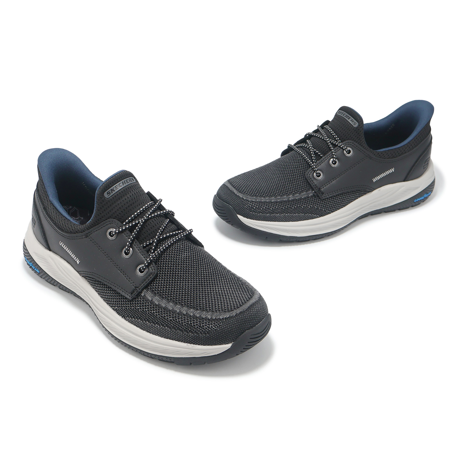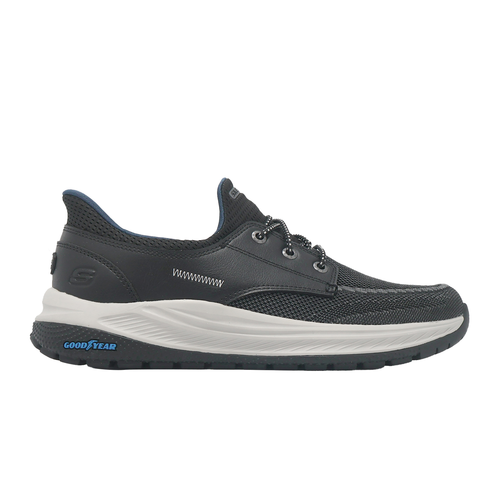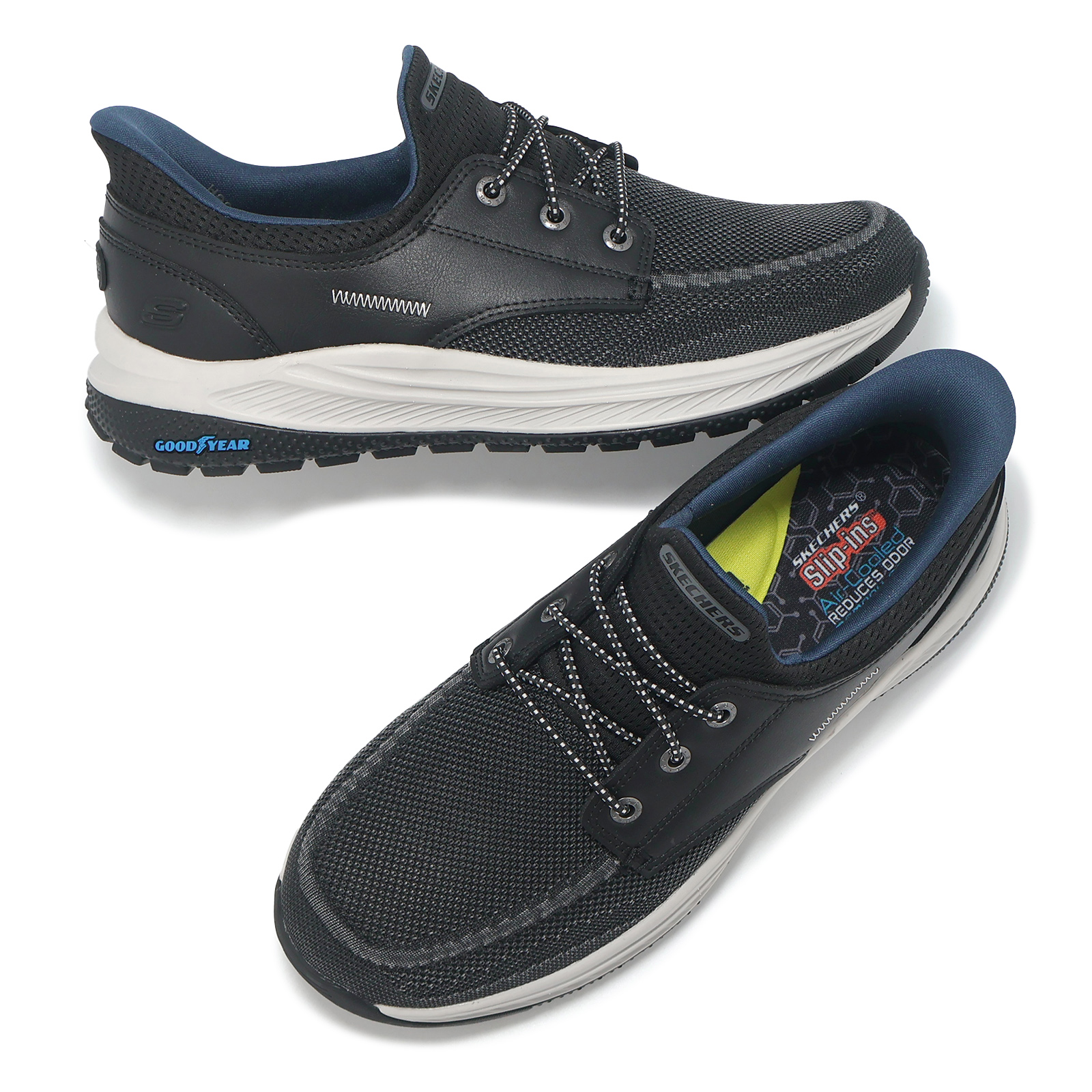 品牌: SKECHERS型號: 205467-BLK品名: Meroe-Alden Slip-Ins版型: 腳寬者建議大半號MEROE 系列,套入式馬克縫帆船鞋,鞋底延邊使用GOODYEAR 固特異橡膠,增強鞋底的穩定與耐磨度,搭配帶來舒適感的RELAXED FIT 加大鞋頭空間設計,讓雙腳擁有更多空間伸展,讓您隨時可以踏上您的下一次航海冒險。