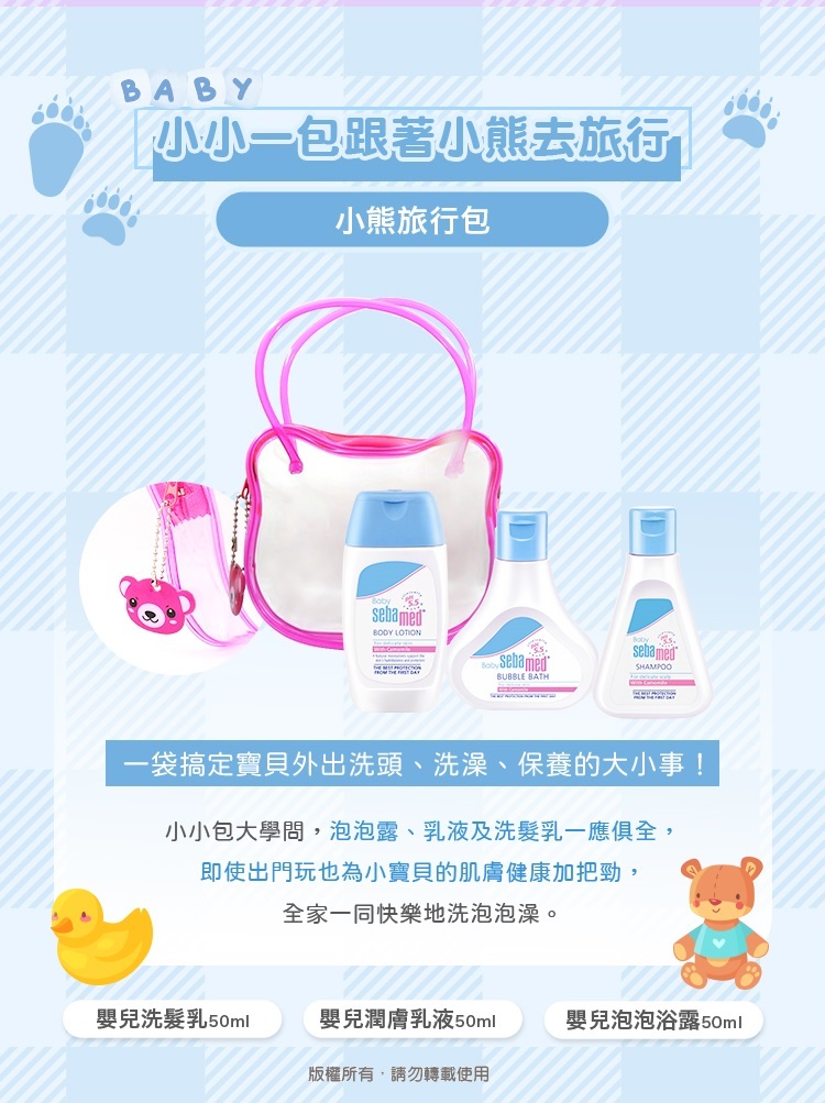 小熊旅行包(嬰兒洗髮乳50ml+嬰兒潤膚乳液50ml+嬰兒泡泡浴露50ml)