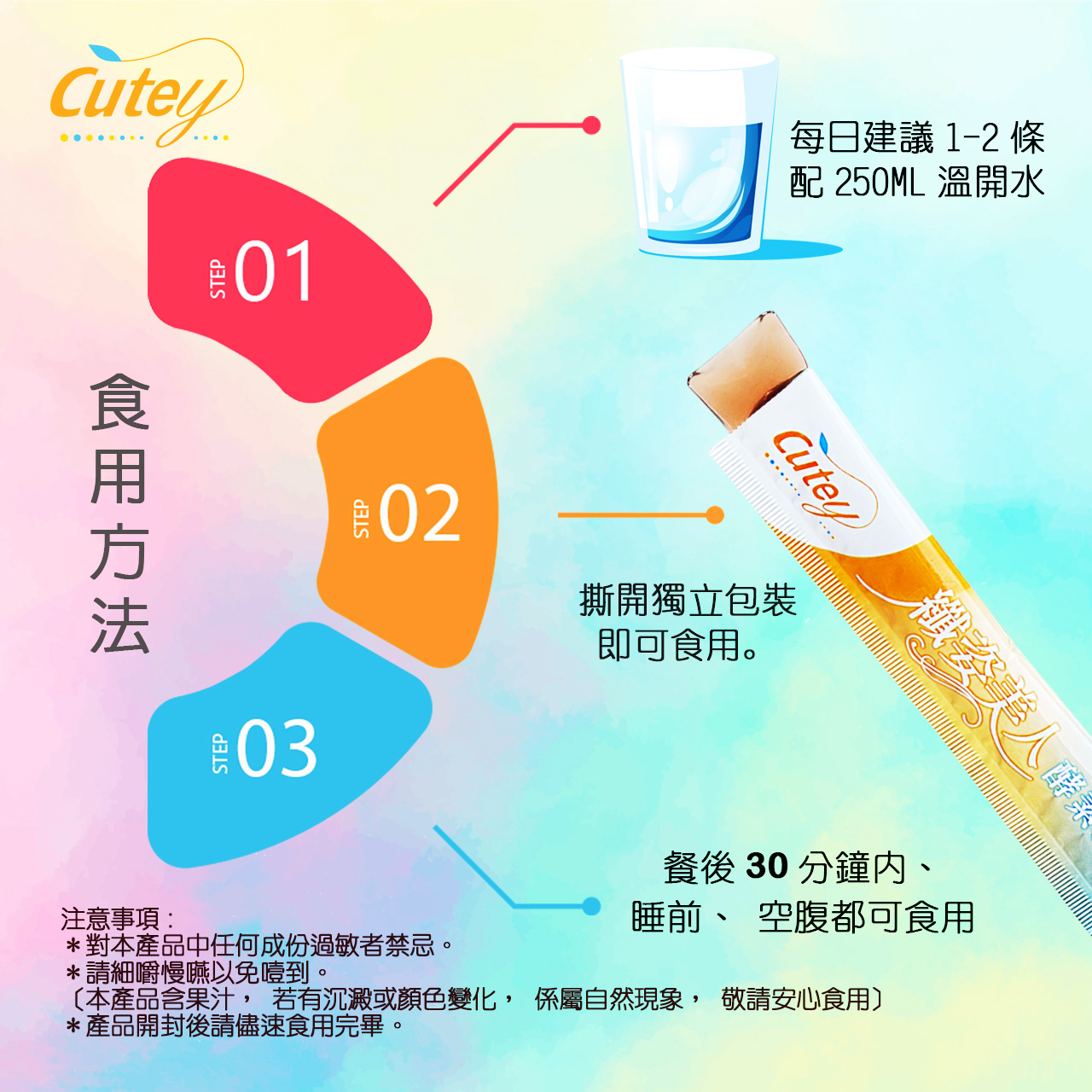 ✽本產品含纖維建議食用後搭配100~150ml水使用幫助腸道蠕動。
