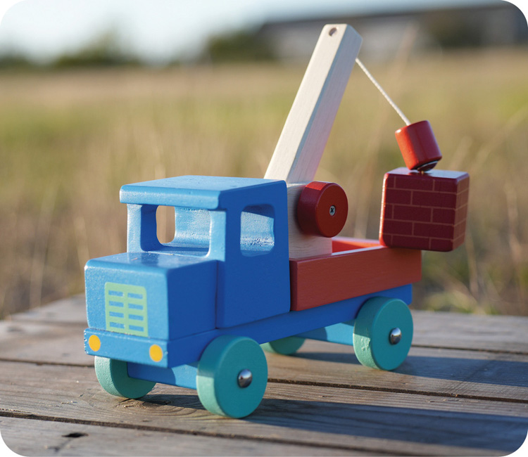 精典復古的運輸車系列,讓孩子沉浸在車車的世界裡面。藍與珊瑚橘配色的藍天吊卡車,可載貨也可進行吊掛作業。用手來回推動、裝載貨物或吊掛作業,訓練孩子的手部肌肉和操控能力。起重機有磁性設計,可吸住紅色磚塊進行垂吊作業。