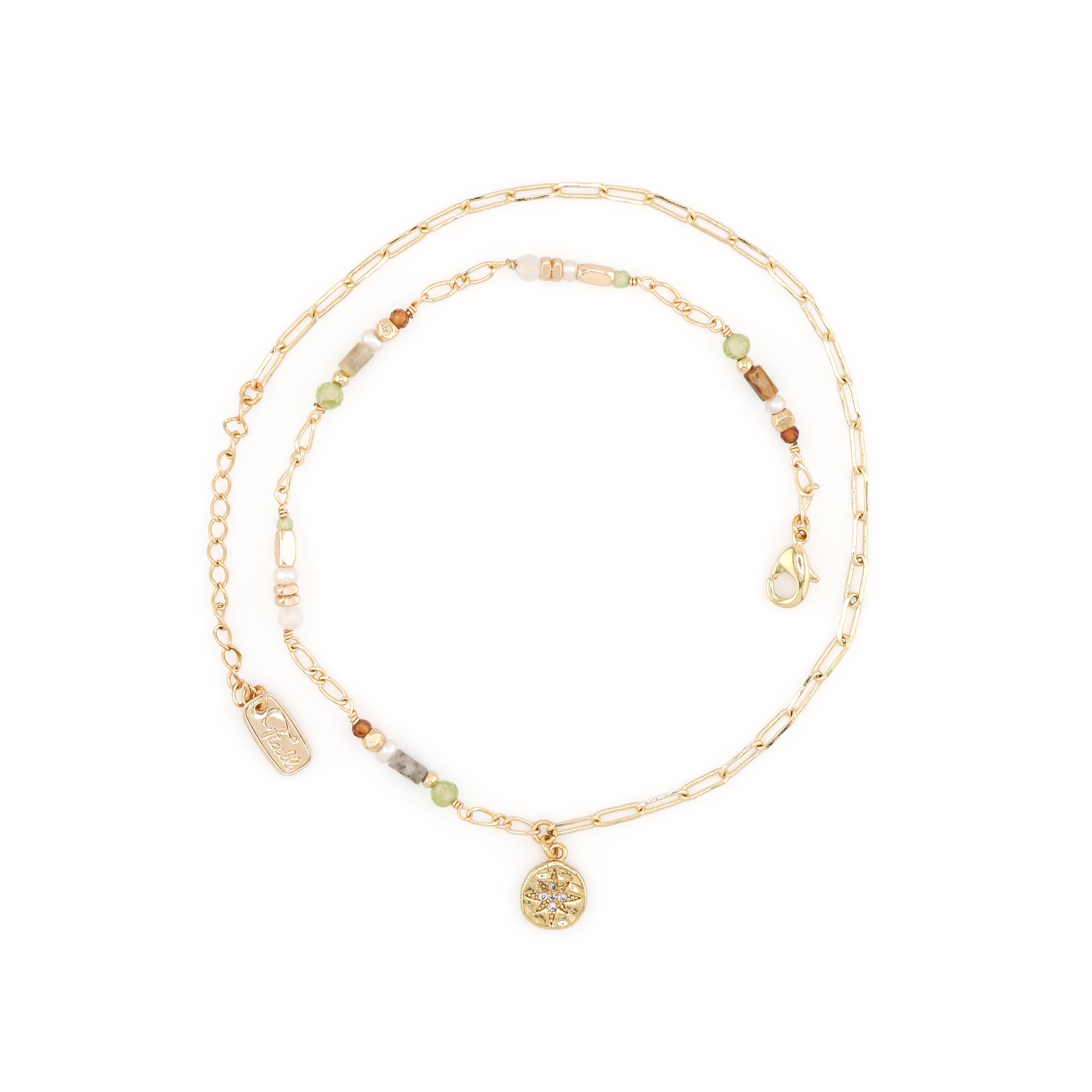 – 商品材質 Product Materials –橄欖石、狂紋瑪瑙、橙石榴石、淡水珍珠、月光石、芒星鋯石、黃銅鍍18K金– 寶石寓意 Gemstone Fortunes –