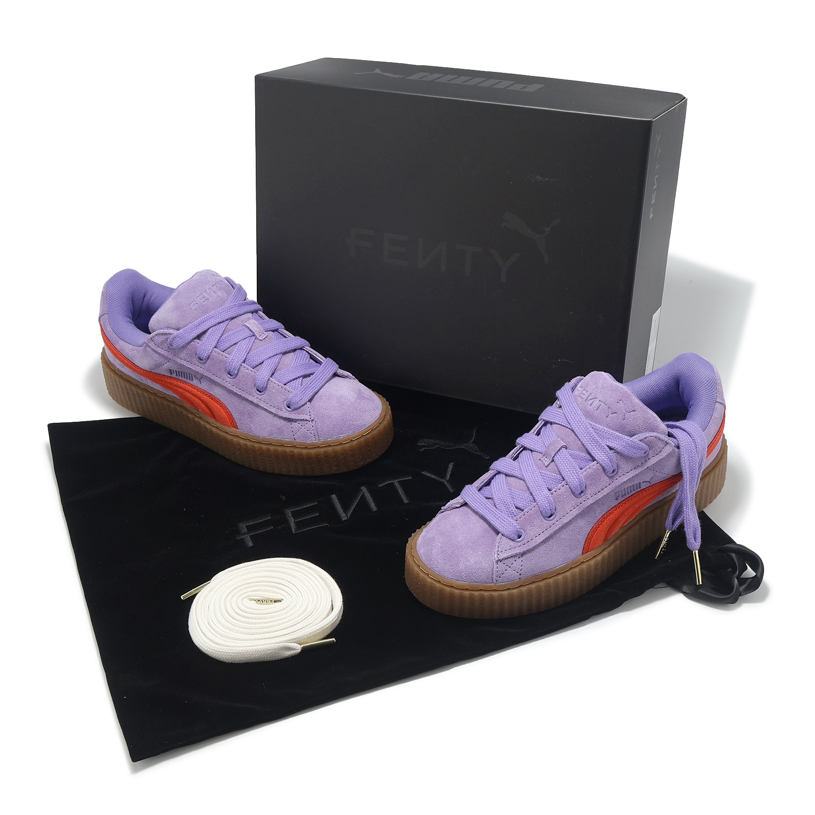 * 鞋面採用高質感皮革材質製成,搭配鞋側金色經典 Puma Logo 與後跟雷哈娜品牌 Logo,打造高級質感風格。