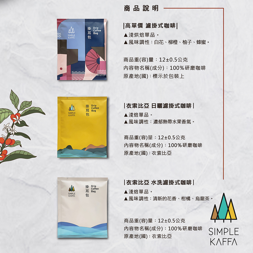 說明:高單價掛耳可能為(稀有豆種、藝伎、競標豆),當期高單價掛耳包品項可參考散裝掛耳包中180元之品項食品業者登錄字號:A-183587935-00000-6國內負責廠商名稱:興波事業有限公司國內負責廠商電話:(02)3322-1888國內負責廠商地址:台北市中正區忠孝東路二段27號投保產品責任險公司與字號:富邦1000萬0524字第22AML0001785號備註:每一組禮盒皆附專屬提袋