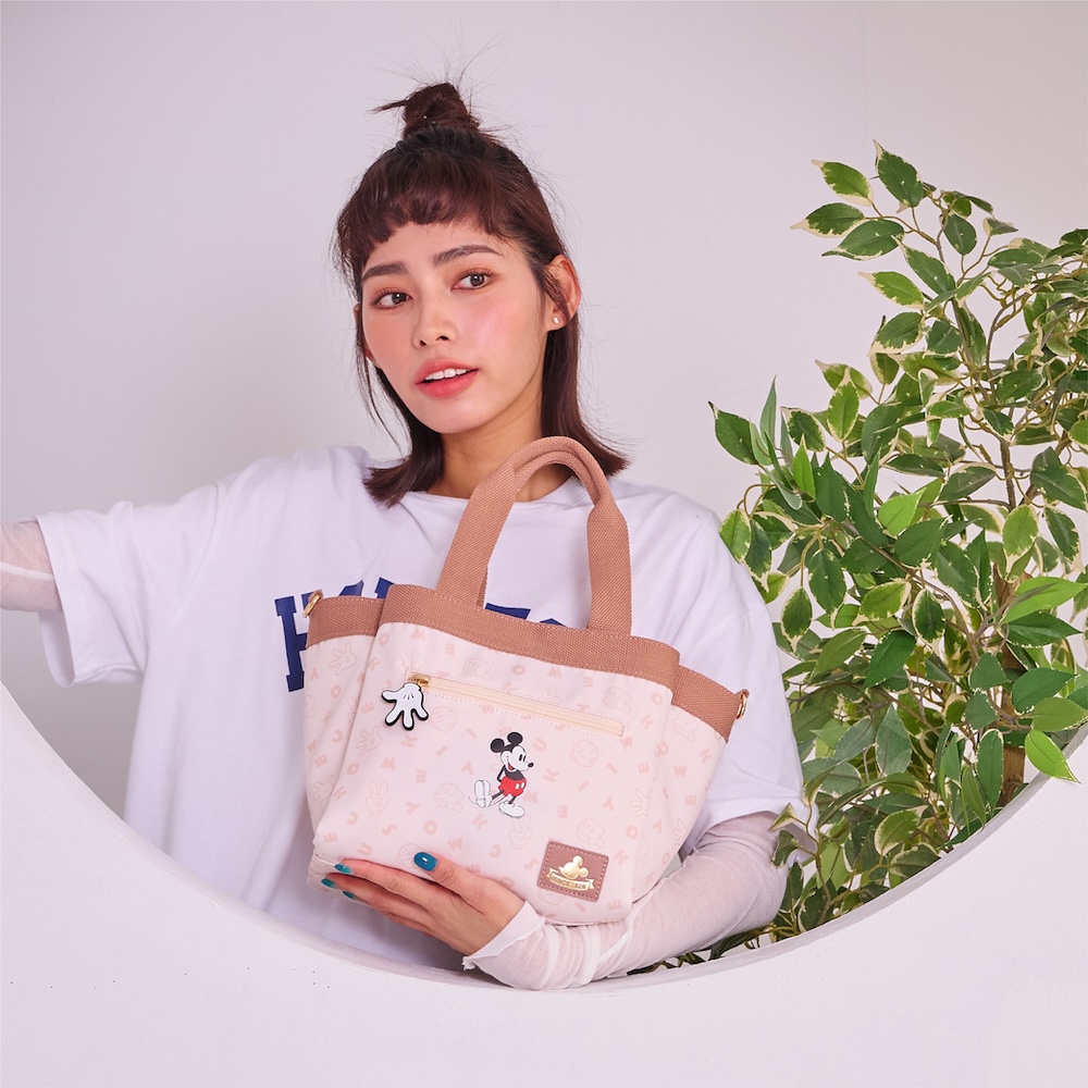 復古米奇系列全新推出溫柔奶油色|個性酷黑色,以經典字母融合充滿童趣的剪刀石頭布,為休閒系列包款注入可愛的率性氣息!