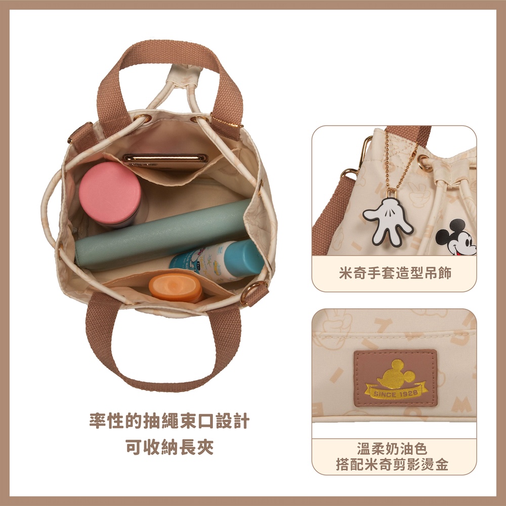 復古米奇系列全新推出溫柔奶油色|個性酷黑色,以經典字母融合充滿童趣的剪刀石頭布,為休閒系列包款注入可愛的率性氣息!