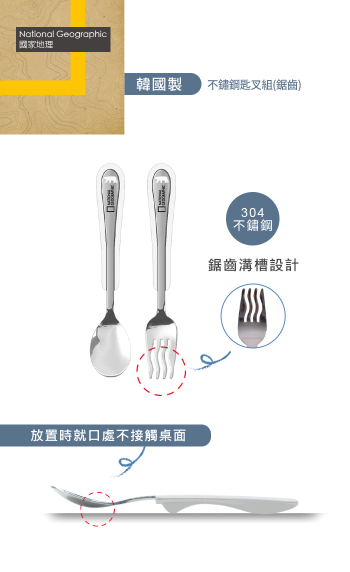 材質:匙.叉-304不鏽鋼握柄-ABS樹脂/ 耐熱溫度:80度
