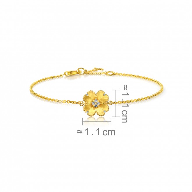以四葉草為設計元素的足金手鍊,精緻勾絲工藝精雕金屬紋理,人手打造葉面細緻的質感,賦予復古感。