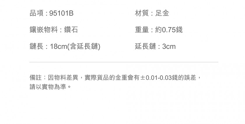 【商家資訊】公司名:英屬維爾京群島商周生生珠寶行股份有限公司台灣分公司統一編號:89390142客服電話:02-2789-6809客服時段:週一~週五10:00~17:00