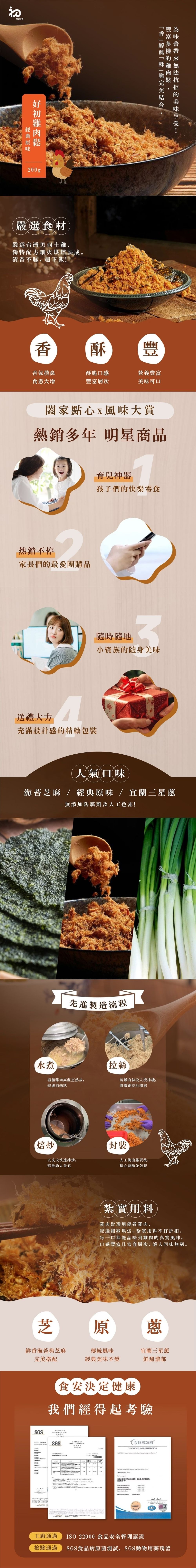 肉鬆是以健康黑羽土雞獨家配方細火烘焙真材實料、絲絲入味無添加防腐劑及人工色素保證自然好滋味!